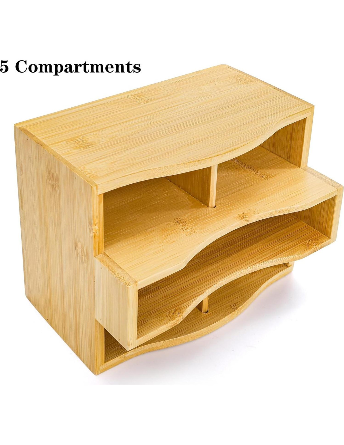 - 5 Compartimentos: Nuestro organizador de control remoto cuenta con 5 compartimentos, 1 compartimento central y 4 ranuras laterales. No es solo para controles remotos, sino que también se puede usar para organizar otros artículos, como cuadernos, paletas de maquillaje, bolígrafos, lápices, borradores, tijeras, teléfonos y otros elementos esenciales para el hogar u oficina.