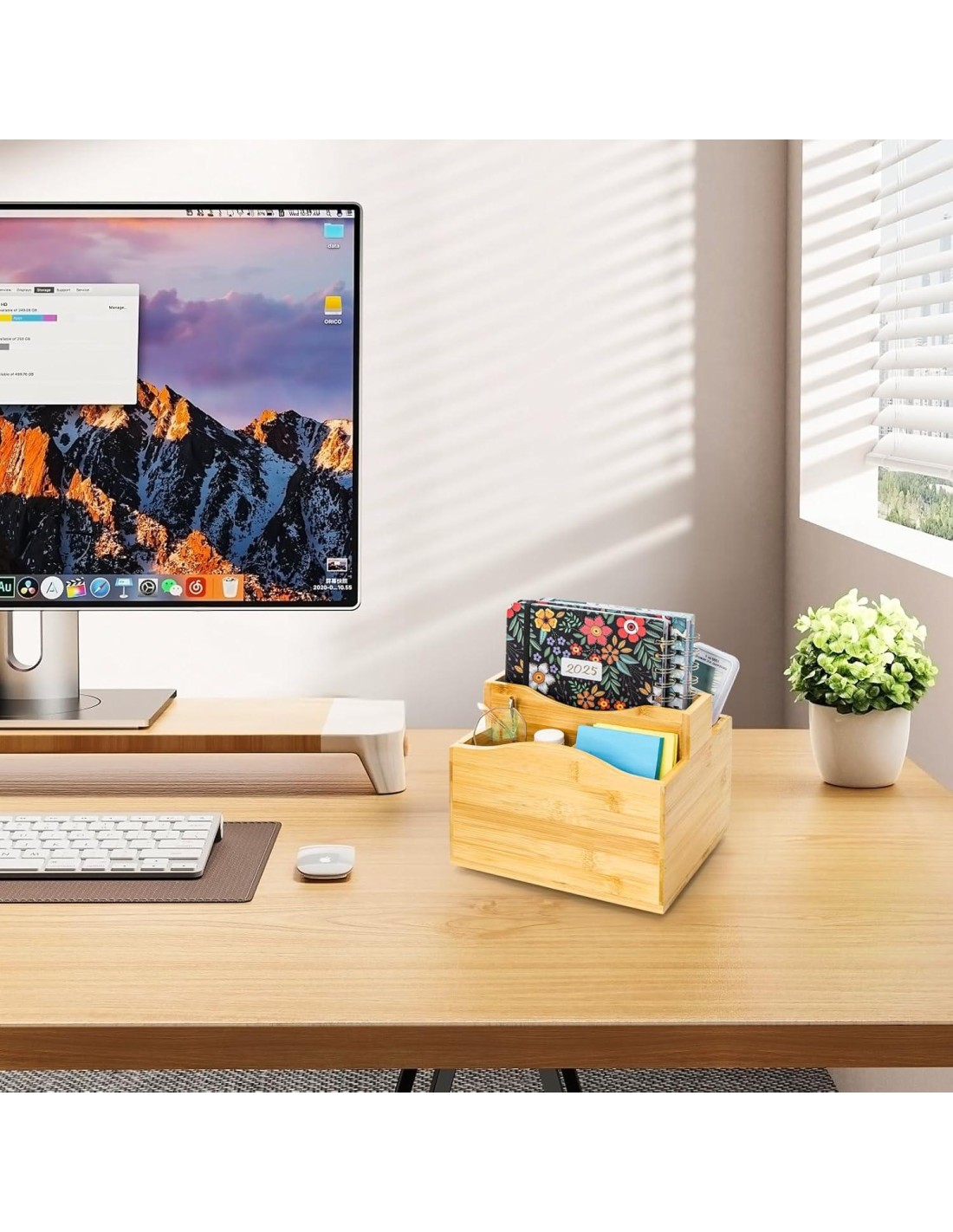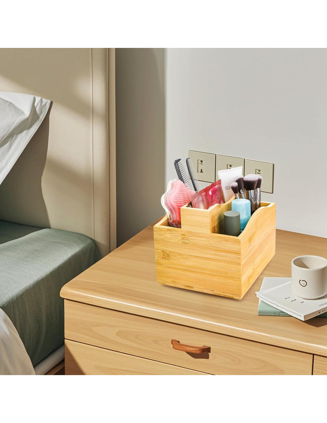 Soporte para Control Remoto que Gira 360 Grados, Organizador de Mesa de Noche con 5 Compartimentos para Controlador, Bolígrafo, Teléfono, Correo, Calculadora, Oficina. Material: Bambú Natural. Tamaño: 19.81 cm L x 16.00 cm W x 15.75 cm H. Forma: Rectangular. Nuestro organizador de control remoto cuenta con 5 compartimentos, 1 compartimento central y 4 ranuras laterales. El soporte para control remoto de bambú DEAYOU viene con una base giratoria de 360 para un fácil y conveniente acceso a los artículos desde cualquier lado.