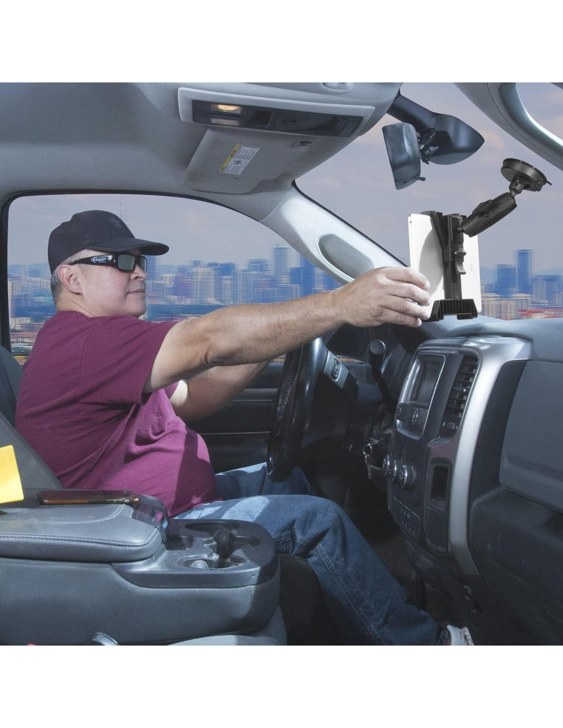 - INCLUYE - Montaje de ventosa resistente, disco de tablero y soporte de tablet ajustable fácil de instalar.