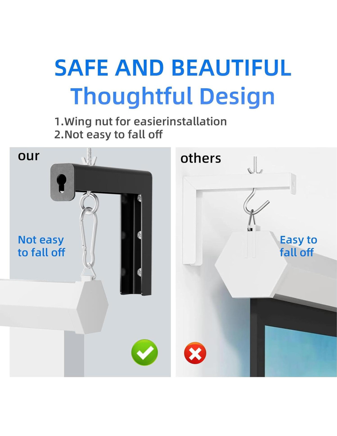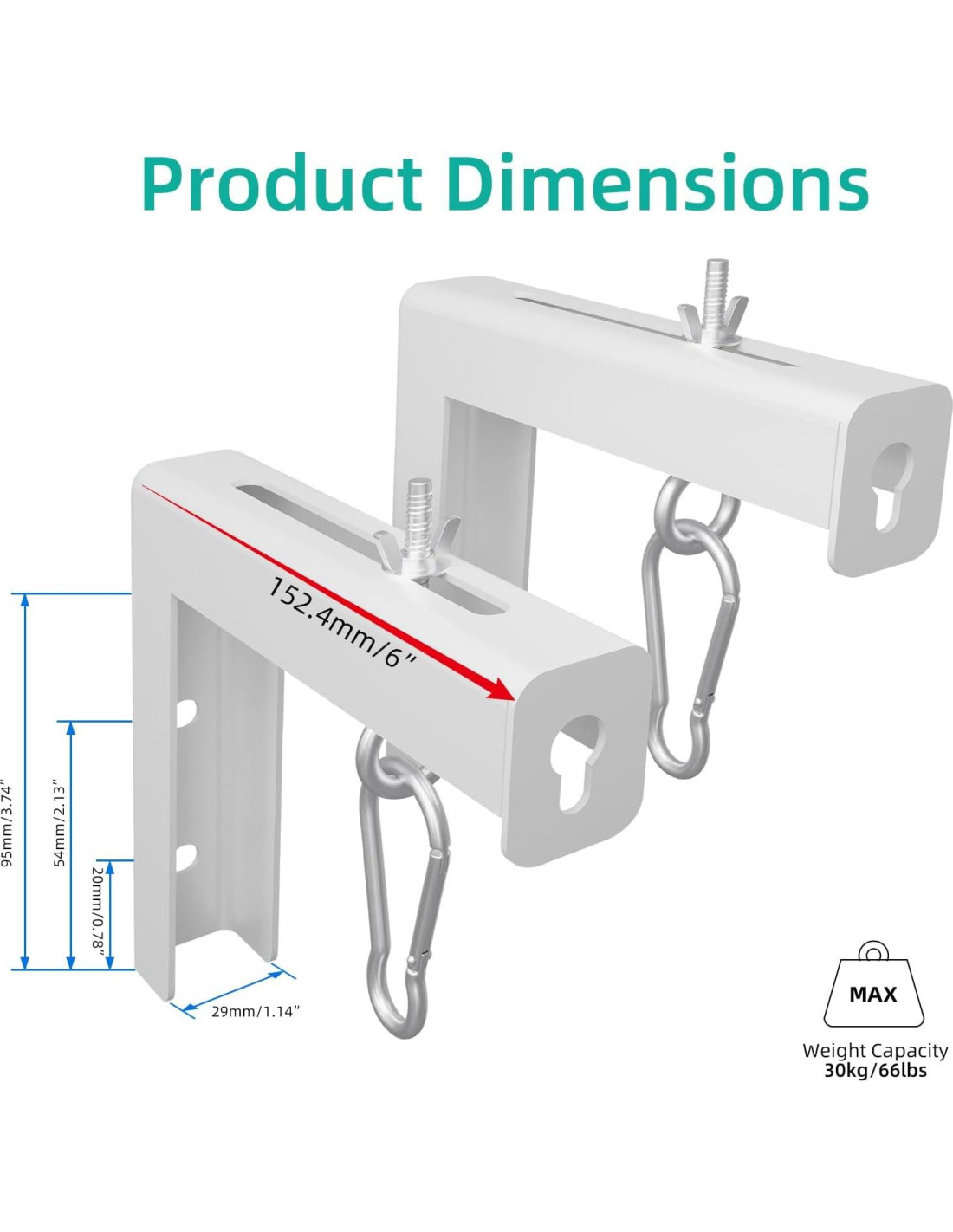 - Sistema de Gancho Ajustable y Extensión de 6": Logra una alineación precisa con ganchos deslizantes (rango de 1.5-5" (3.81-12.7 cm)) y soportes en L de 6" (15.24 cm). Ideal para superficies irregulares en cines en casa, oficinas o configuraciones al aire libre.