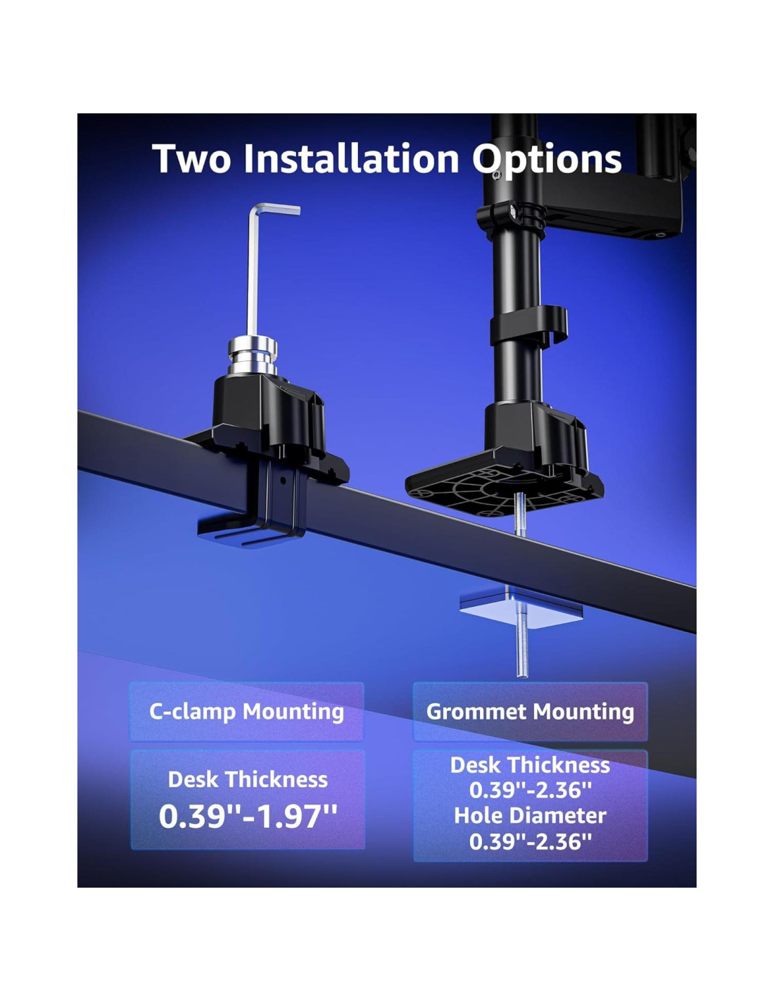 - Fácil de Sujetar al Escritorio: Montaje con un robusto C-clamp (grosor del escritorio entre 0.39" (1 cm)-2.76" (7 cm)) o base de grommet (grosor del escritorio entre 0.39" (1 cm)-1.97" (5 cm), diámetro del agujero 0.39" (1 cm)-2.36" (6 cm)). Si el grosor de su mesa no está dentro de este rango, por favor contáctenos para un C-clamp adecuado.