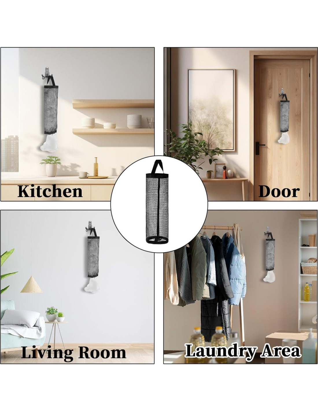 - Diseño de Malla Colgante El soporte de bolsas de plástico para bolsas de compras viene con un mango que te permite colgarlos en la pared, puerta o gancho. El diseño de malla lo hace más transpirable y evita que los alimentos almacenados se pudran y moho. Nuestro soporte para bolsas de compras es fácil de usar; puedes ponerlo por la parte superior y sacarlo por la parte inferior.