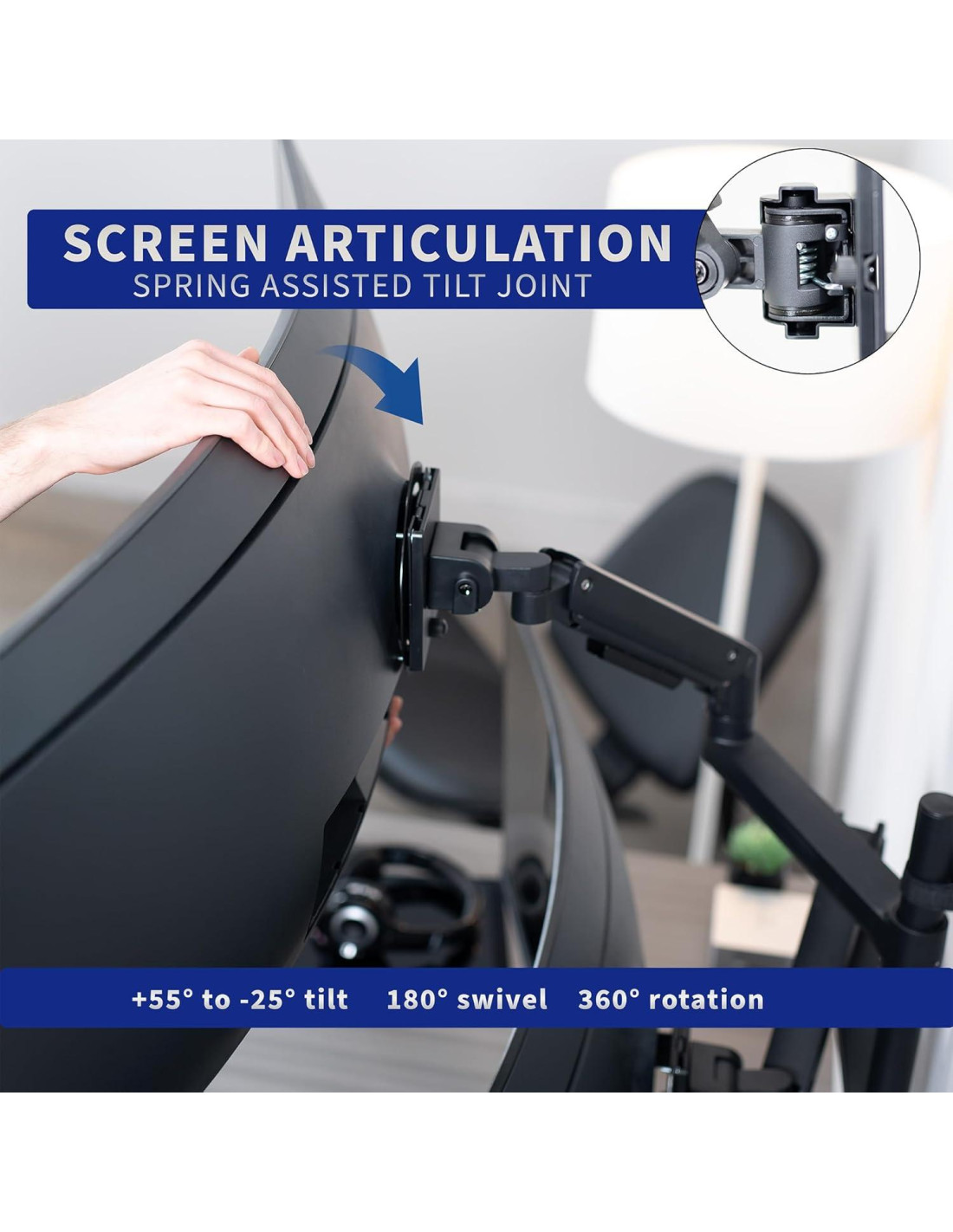 - Construcción de Aluminio Fundido de Alta Resistencia: Los brazos están hechos de aluminio fundido premium para máxima resistencia, resistencia a rayones y durabilidad. Las juntas de inclinación de alta capacidad acomodan pantallas más pesadas sin hundirse. Soporta de 2 kg a 15.2 kg por brazo.