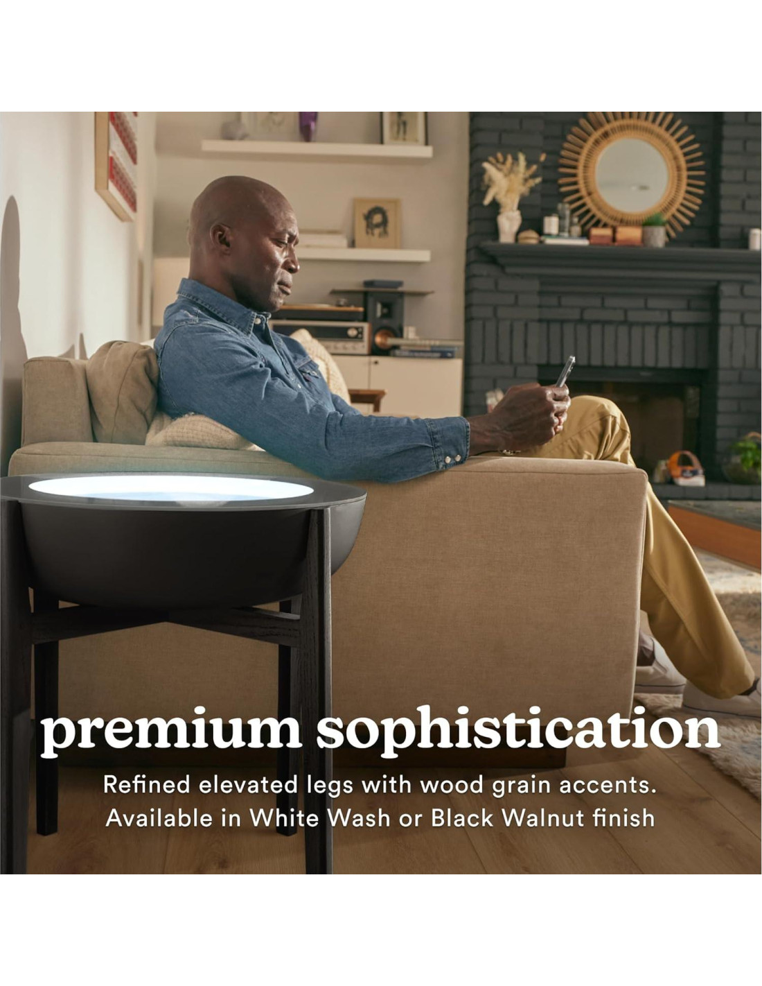 Presentamos el mismo drift que merece una pausa, ahora para espacios que no son tu escritorio. El soporte de madera maciza Homedics te brinda la flexibilidad de disfrutar de una calma premium, incluso cuando el espacio en la mesa es mínimo. Con una altura de 53.34 centímetros, la suavidad y textura de los tonos de madera del soporte complementan perfectamente tu espacio; disponible en lavado blanco o nogal negro. Tan elegante y estiloso como siempre, este es el accesorio de drift que has estado esperando. Así que adelante, invita a la calma. Los anillos son un anillo de madera exterior con vidrio en el centro para ver el drift.