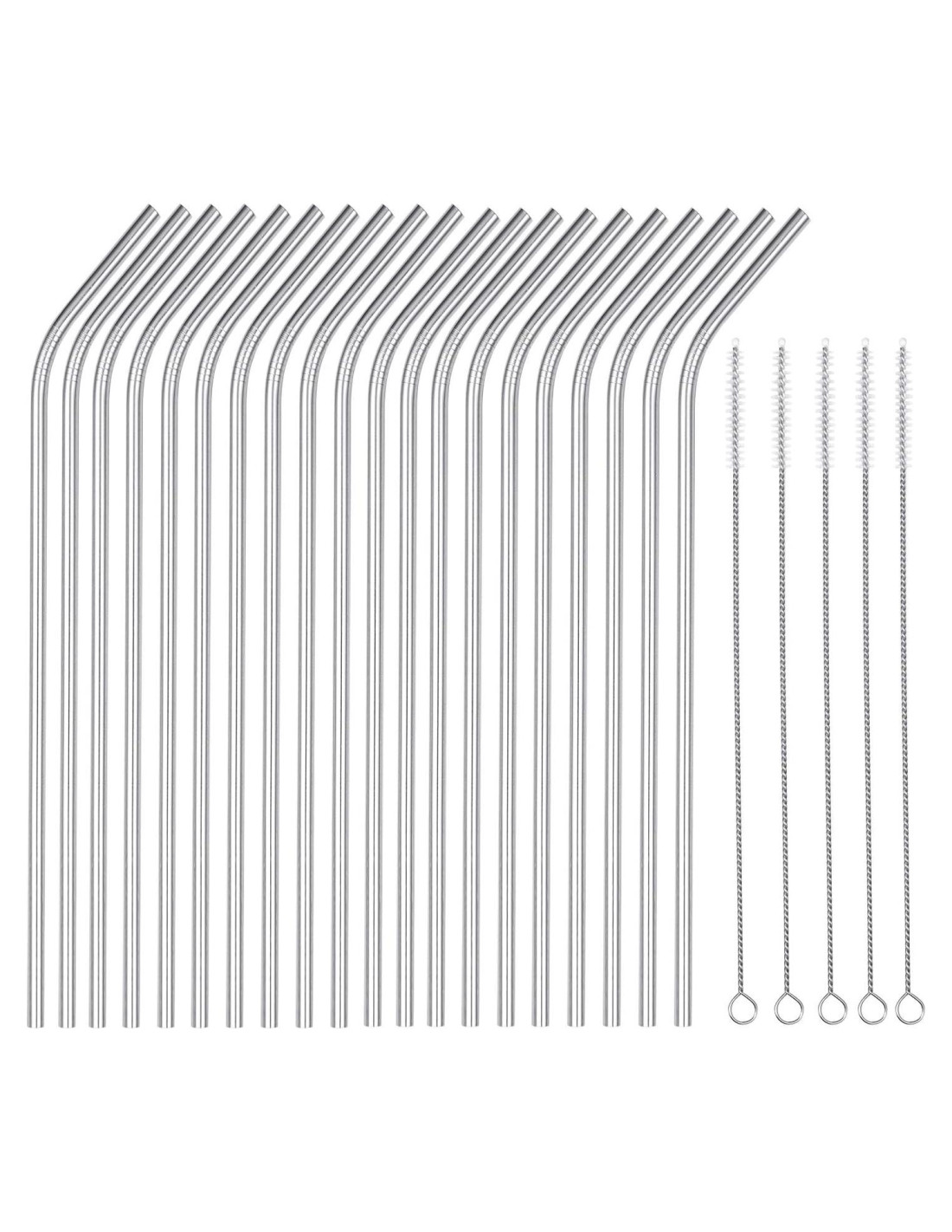 - Incluye 20 popotes de metal doblados y 5 cepillos que pueden limpiar, los popotes pueden pasar fácilmente por la ranura de la tapa de tu vaso de acero inoxidable de 20 oz.