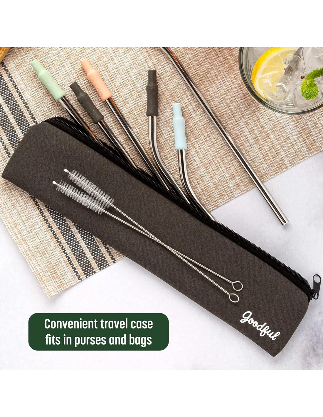 Disfruta de bebidas en movimiento sin la culpa de usar popotes desechables con cada sorbo que tomas. Con estos popotes de acero inoxidable Goodful, puedes llevar fácilmente estos popotes de alta calidad contigo a donde quiera que vayas. Los popotes se almacenan fácilmente dentro de la bolsa de transporte con cordón incluida, por lo que este set de popotes puede caber fácilmente en cualquier bolso, mochila o bolsillo para mayor comodidad en movimiento. Las suaves puntas de silicona son cómodas para beber, manteniendo tus dientes y labios alejados del acero inoxidable. ¿La mejor parte? ¡Estos popotes son fáciles de limpiar! Colócalos en el lavavajillas o usa el cepillo de limpieza incluido mientras estás fuera para limpiar estos popotes rápida y fácilmente.