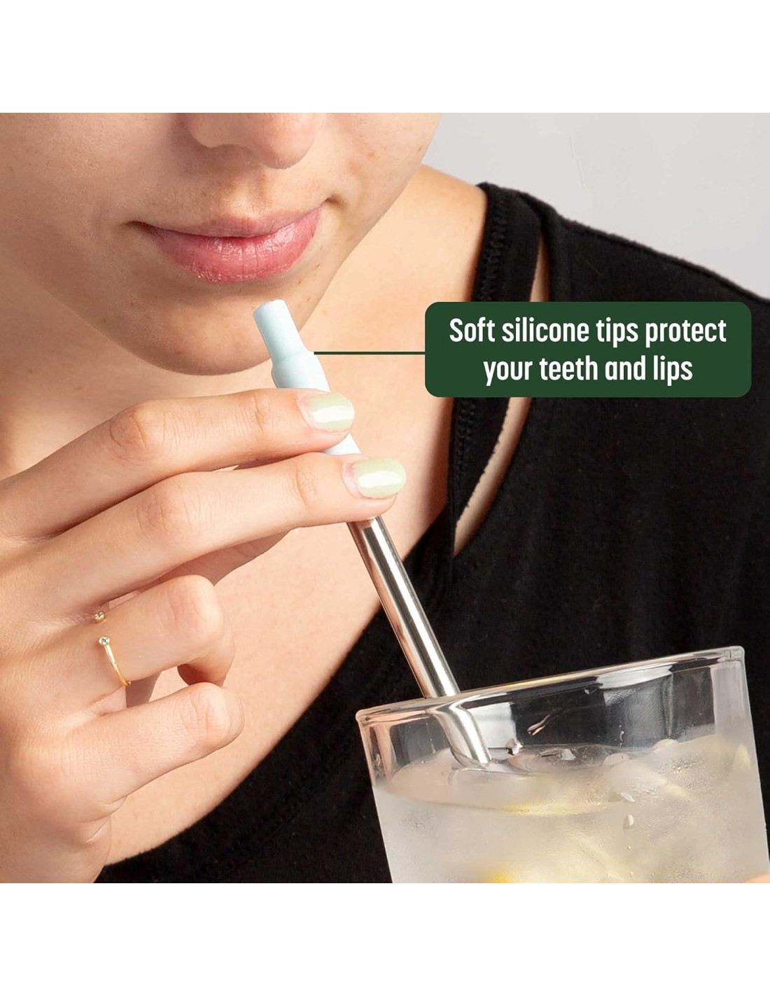 - SORBO CÓMODO: Bebe desde la suave punta de silicona del popote y mantén tus dientes y labios alejados del metal. La punta de silicona es removible para una fácil limpieza. Usa estos popotes de acero inoxidable en cualquier vaso de tamaño estándar, se ajustan a todas las aberturas de popote de vaso estándar.
