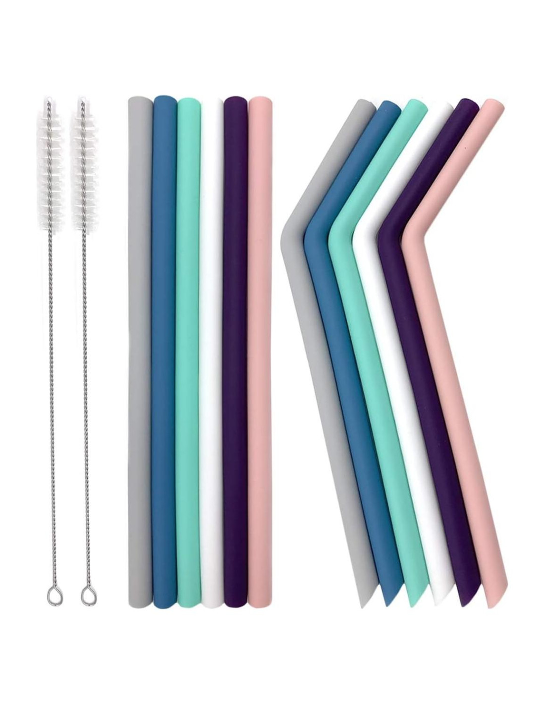 - Pajitas de Silicona Mejor Valor: Conjunto de 12 grandes pajitas de silicona en 6 colores variados, 2 cepillos de limpieza.