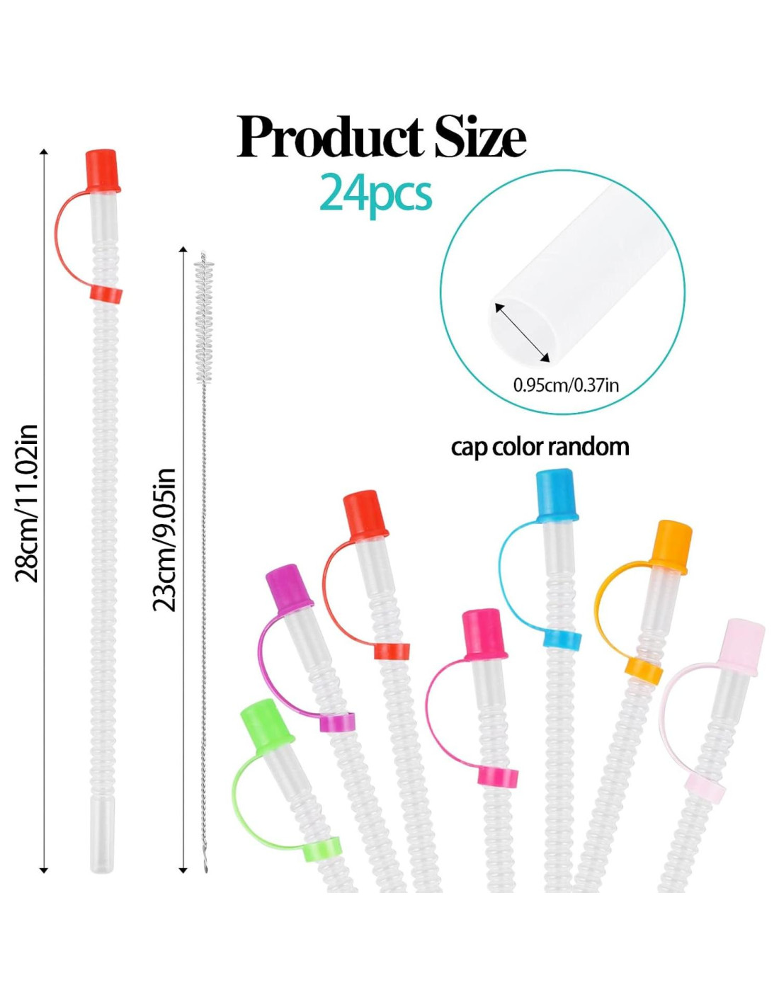 - CONTENIDO DEL PAQUETE - Recibirás 24 popotes de plástico reutilizables y flexibles con tapas de popote en 6 colores aleatorios, incluyendo púrpura, azul, rosa, verde, negro y amarillo, en cantidades suficientes para un uso prolongado. Hay 2 cepillos para popotes en el paquete.