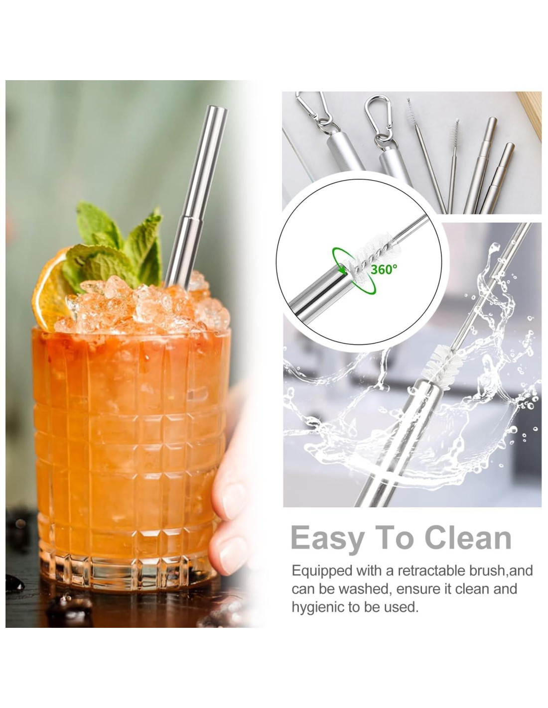 - Paquete Incluido: Este popote plegable reutilizable incluye 2 popotes reutilizables de acero inoxidable, 2 cepillos de limpieza de metal, 2 llaveros y 2 boquillas de metal. Facilita tu vida