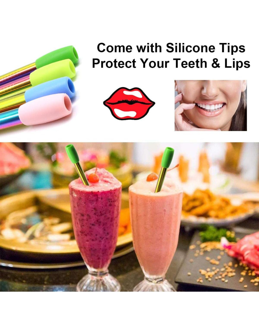 - Popotes Reutilizables para Té de Burbuja con Bolsas/Limpieza/Cepillo de Limpieza/Puntas de Silicona, Fáciles de Llevar y Limpiar, Las Puntas de Silicona Protegen Tus Dientes y Labios de Ser Dañados.