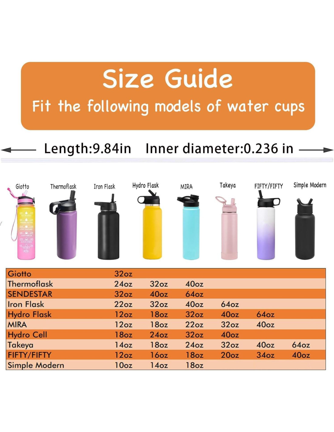 Se ajusta perfectamente a Hydro flask, se ajusta a Thermoflask, se ajusta a tapas de pajitas de Iron Flask boca ancha y muchas otras botellas. 0.31''W x 9.84'' L (0.79 cm x 24.99 cm).