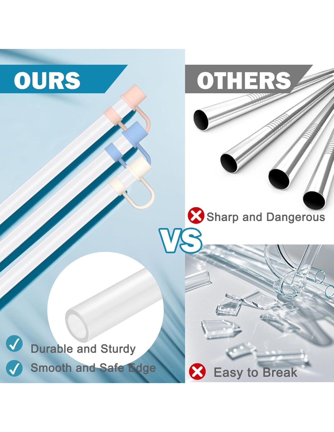 - Materiales de Grado Alimenticio y Ecológicos: Las pajitas de plástico de repuesto HEYSKAY están hechas de plástico de alta calidad, libre de BPA y las fundas de silicona están hechas de material de grado alimenticio, más duraderas y saludables, no de calidad promedio.