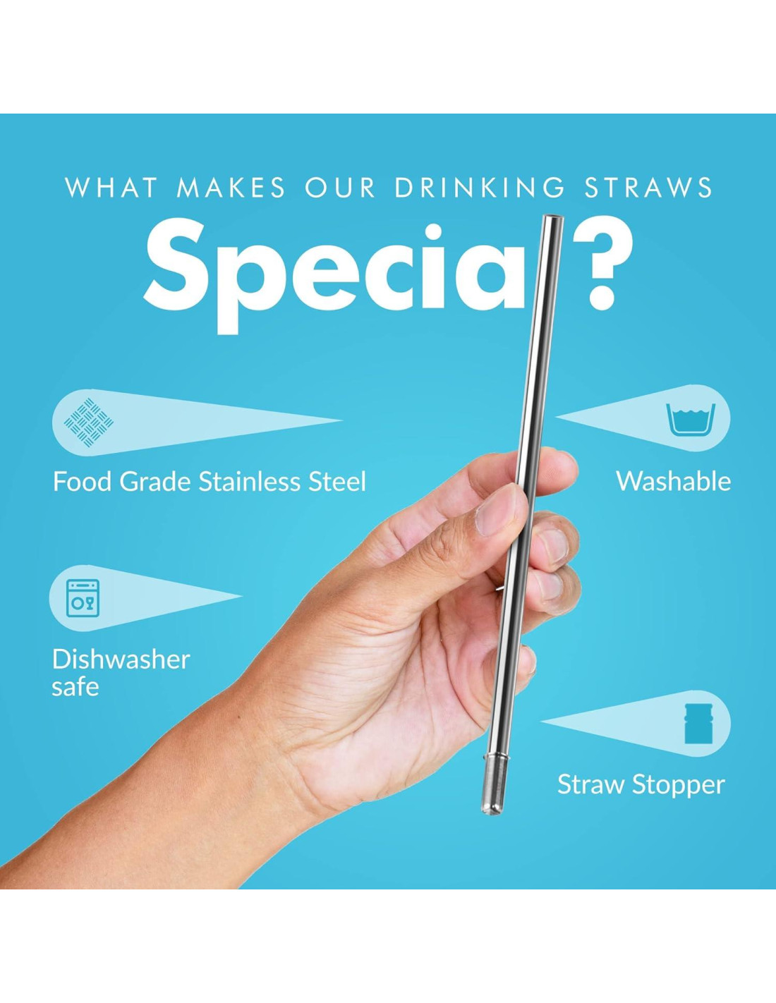 - Adecuado para Todos los Tamaños de Bebidas - Disfruta más de tu bebida favorita cuando uses estos popotes de acero inoxidable. Nuestros largos popotes reutilizables se adaptan fácilmente a la mayoría de los portabebidas. Así que no tendrás ningún problema bebiendo de vasos o copas altos.