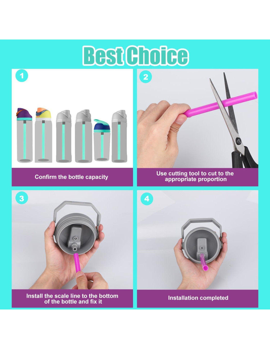 - Longitud personalizable: Cada popote cuenta con marcas de medición claras y se puede cortar fácilmente con tijeras para adaptarse a tu botella de agua según sea necesario. No más preocupaciones sobre doblados de popotes o problemas de tamaño.
