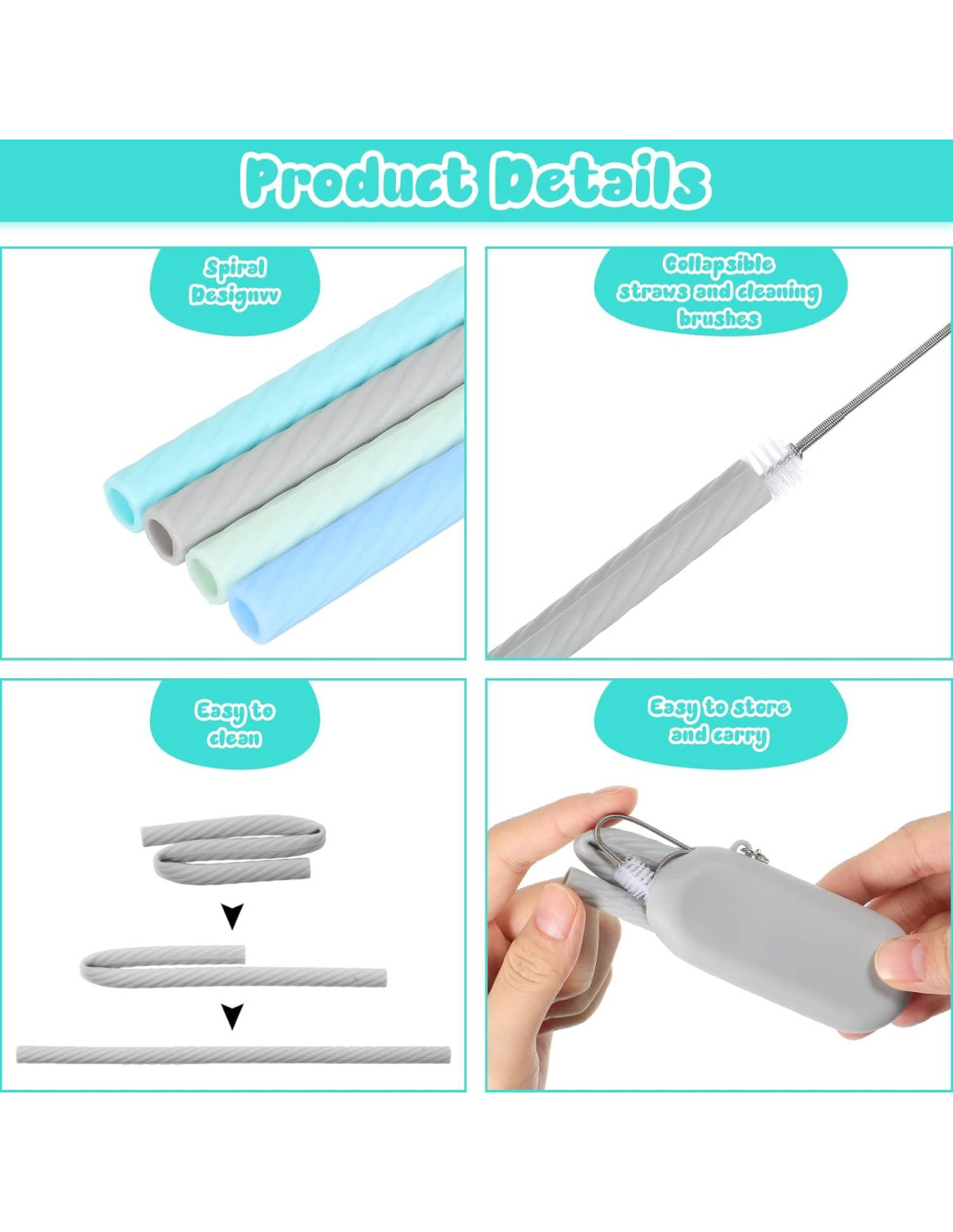 - Pajitas Reutilizables con Estuche: el paquete incluye 4 juegos de pajitas de silicona con estuches, que incluyen 4 piezas de pajitas, midiendo aproximadamente 20 cm (7.87 pulgadas) de largo, 4 piezas de estuches en azul claro, azul oscuro, gris y verde, la pajita y el estuche son del mismo color, aproximadamente 8.6 cm (3.4 pulgadas) de largo y 3.7 cm (1.5 pulgadas) de ancho, portátil y fácil de llevar.