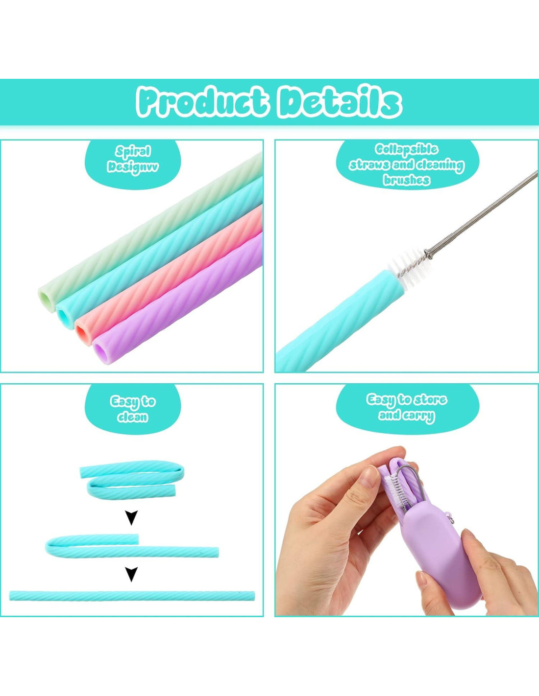 - Cepillo de Limpieza de Pajitas Plegable: el juego de pajitas con estuche incluye 4 piezas de cepillos de pajitas de 26 cm (10.24 pulgadas), tienen una función plegable y se pueden guardar en un pequeño estuche de silicona para fácil almacenamiento; se recomienda usar agua hirviendo para cada limpieza durante unos minutos, seguro e higiénico de usar.