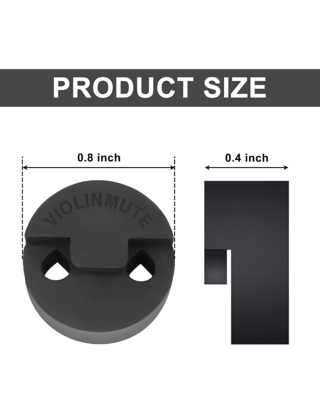 - Dimensiones: 2.1 (L) x 1 (W) x 0.5 (H) pulgadas (5,08 cm x 2,54 cm x 1,27 cm) para el silenciador estilo garra, y 0.8 (L) x 0.8 (W) x 0.4 (H) pulgadas (2,03 cm x 2,03 cm x 1,02 cm) para el silenciador redondo estilo tourte, el silenciador de violín es compatible con la mayoría de los violines de tamaño estándar y violas pequeñas.
