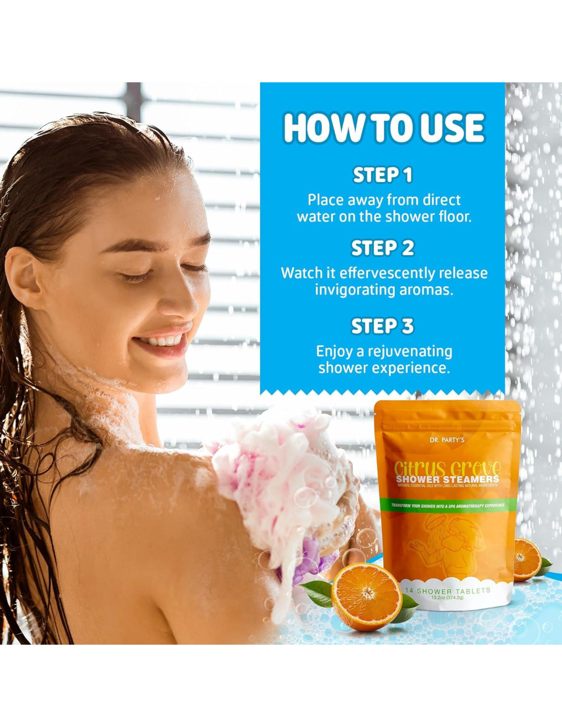 - Fácil de Usar: Simplemente coloca una bolsita en el suelo de la ducha lejos del chorro de agua directo y disfruta de la liberación efervescente de aromas cítricos.
