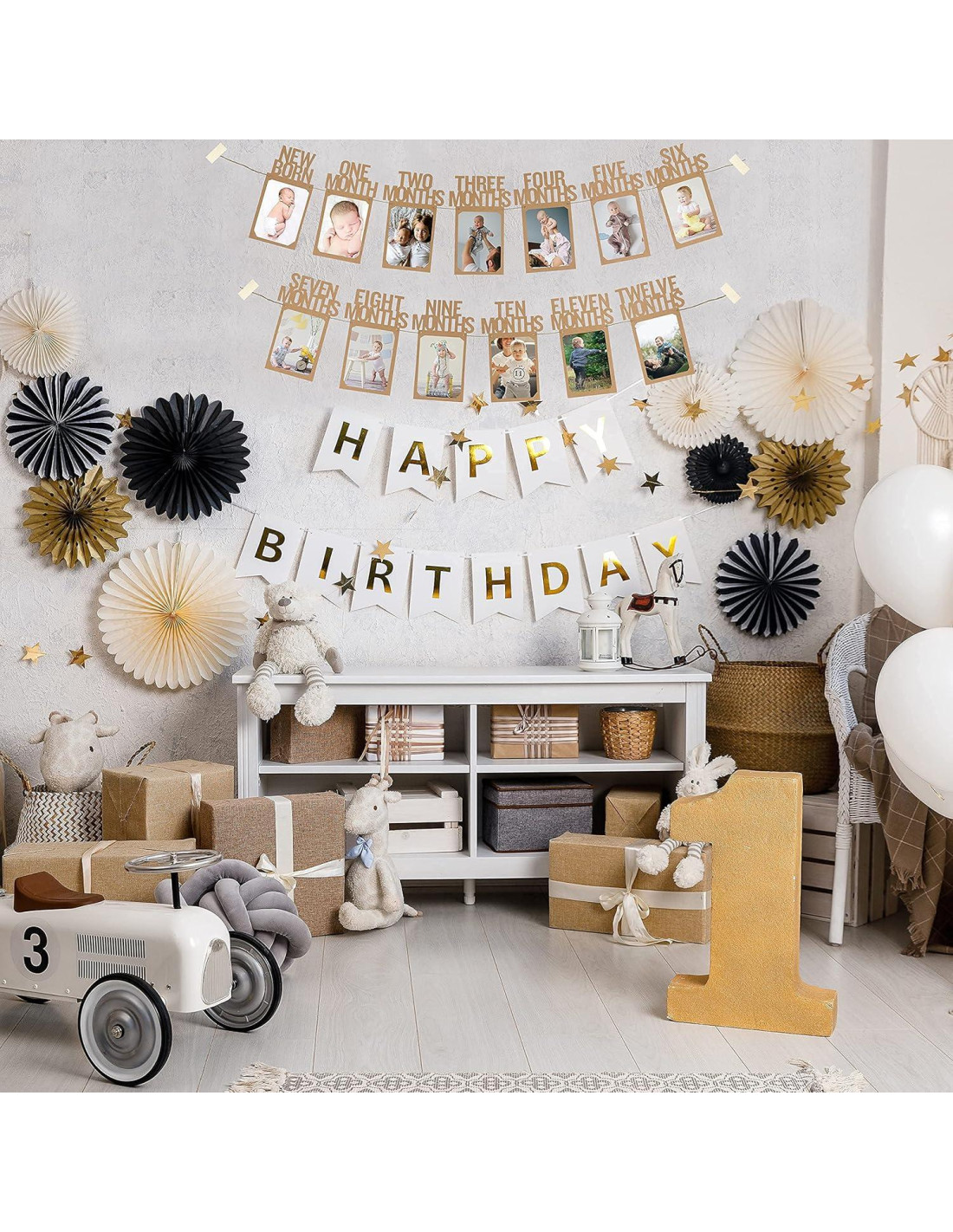 - BANNER PREENSAMBLADO - Entendemos que planificar la fiesta de cumpleaños de 1 año puede ser abrumador, ¡pero estamos aquí para ti! Hemos preensamblado el banner para ti, a diferencia de otros que esperan que gastes más de 10 minutos insertando cinta en 26 pequeños ojales. Con nosotros, simplemente desempaca nuestro banner de fotos de 1 año, inserta las fotos mensuales más lindas de tu niña o niño con facilidad y rapidez.