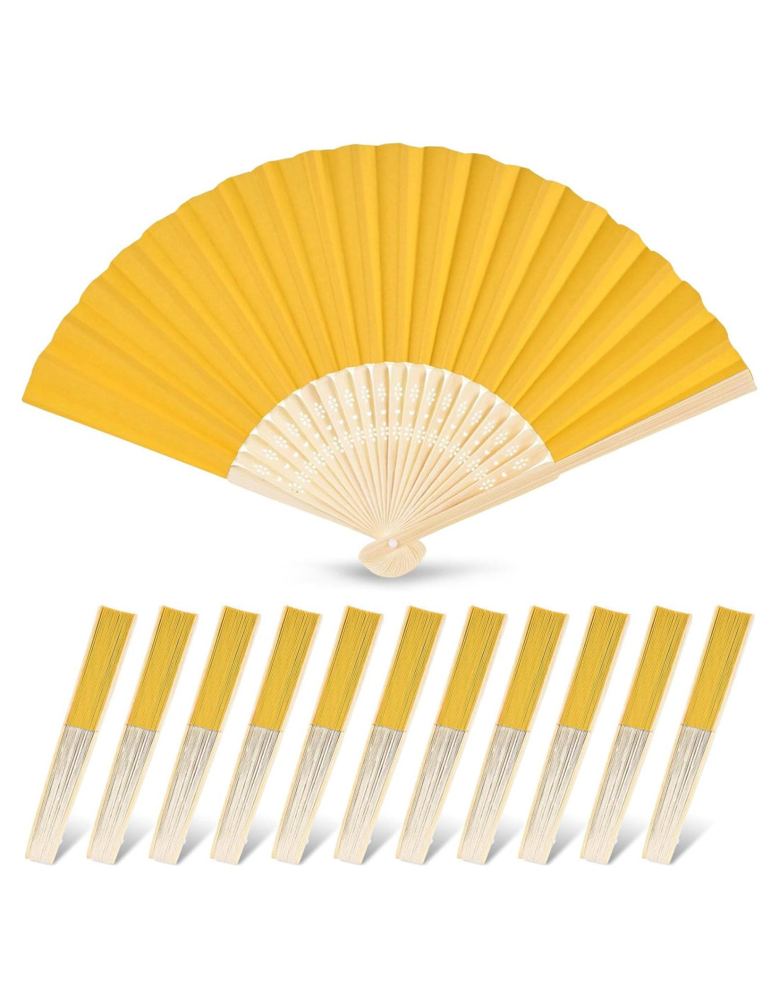 - Lo que recibirás - 12PCS Abanicos de Papel Amarillo Albaricoque (cada uno mide aproximadamente 21 cm de largo, con patrones calados exquisitos en el mango de bambú, lleno de acento exótico)