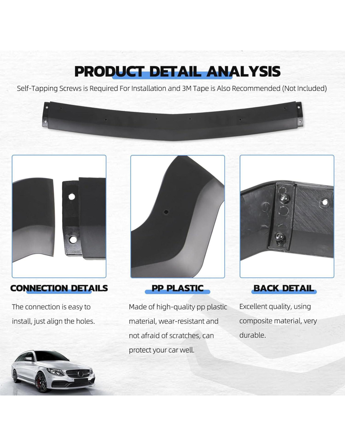 - [Fácil Instalación] No se requiere perforación ni modificación, primero fije el labio del parachoques frontal en la parte inferior del automóvil con cinta adhesiva, y luego fije directamente con tornillos (con instrucciones). La instalación es simple, conveniente y rápida. La aplicación de cinta de doble cara puede proporcionar más estabilidad y se recomienda encarecidamente (cinta de doble cara no incluida).