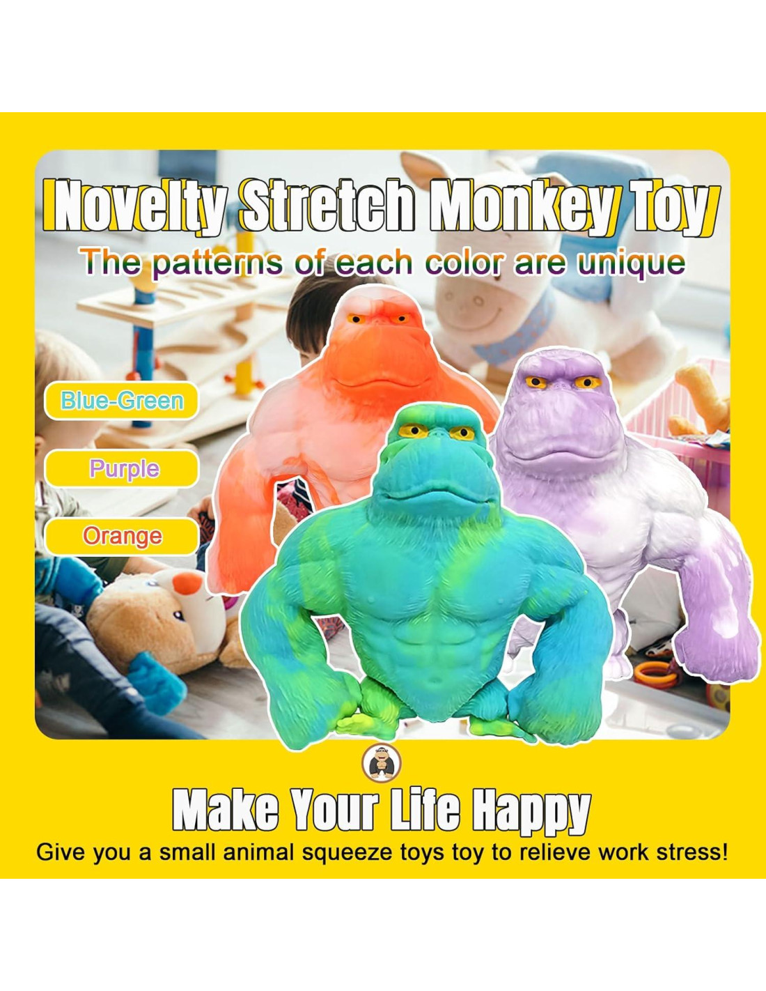 - Función de Estiramiento: Disfruta de la sensación satisfactoria de presionar, torcer o estirar este juguete gorila a largas distancias; siempre regresa a su forma original sin deformidades ni roturas. Su tamaño compacto y fácil limpieza (simplemente lavar con agua o agua jabonosa) aseguran diversión y reutilización sin fin.