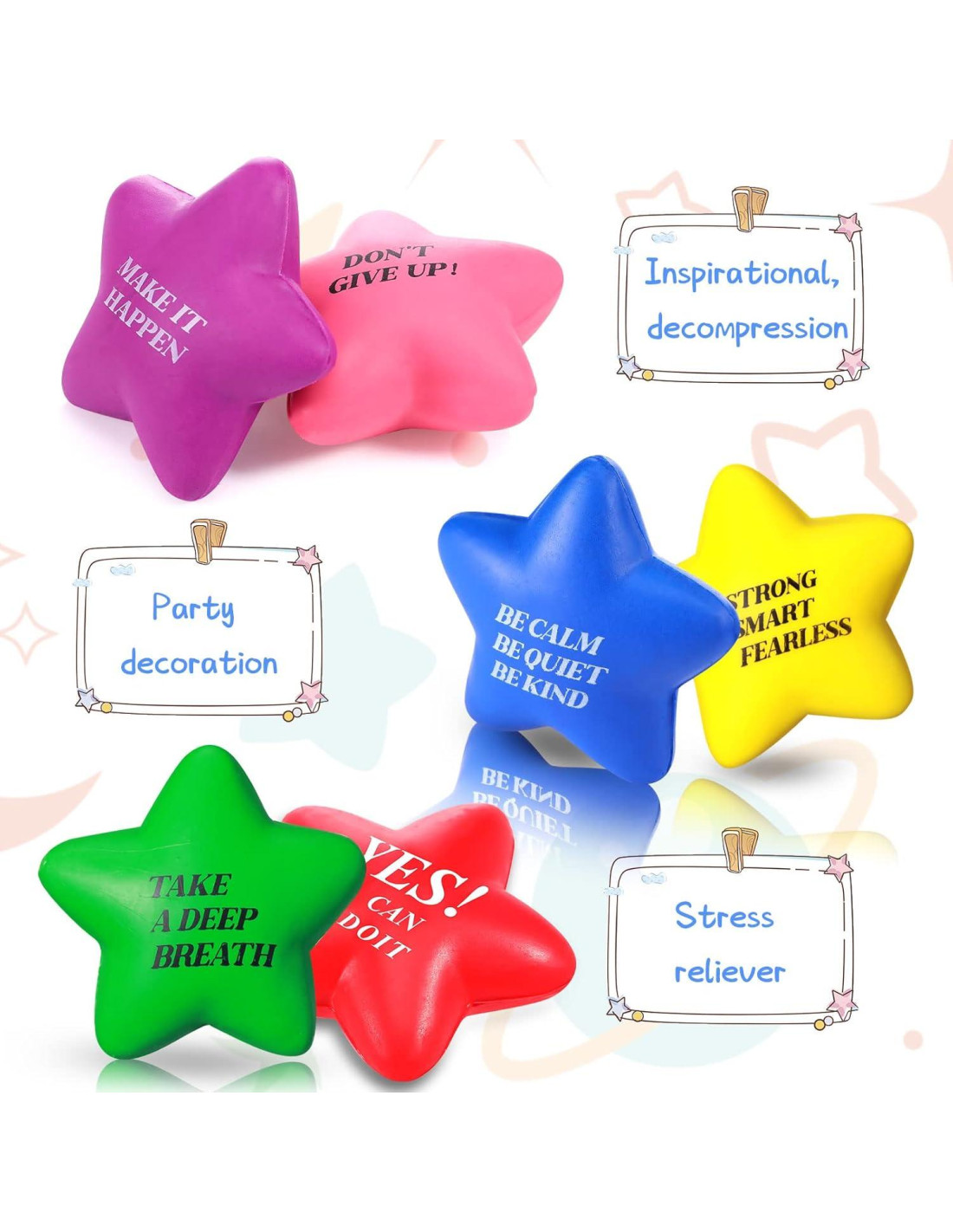 - Cantidad abundante: el paquete contiene 30 piezas de pelotas de estrés en forma de estrella en colores surtidos, lindas y coloridas, que son suficientes para satisfacer tus diversas demandas de decoración, y puedes compartirlas con tus familiares o buenos amigos, para pasar un buen rato con ellos