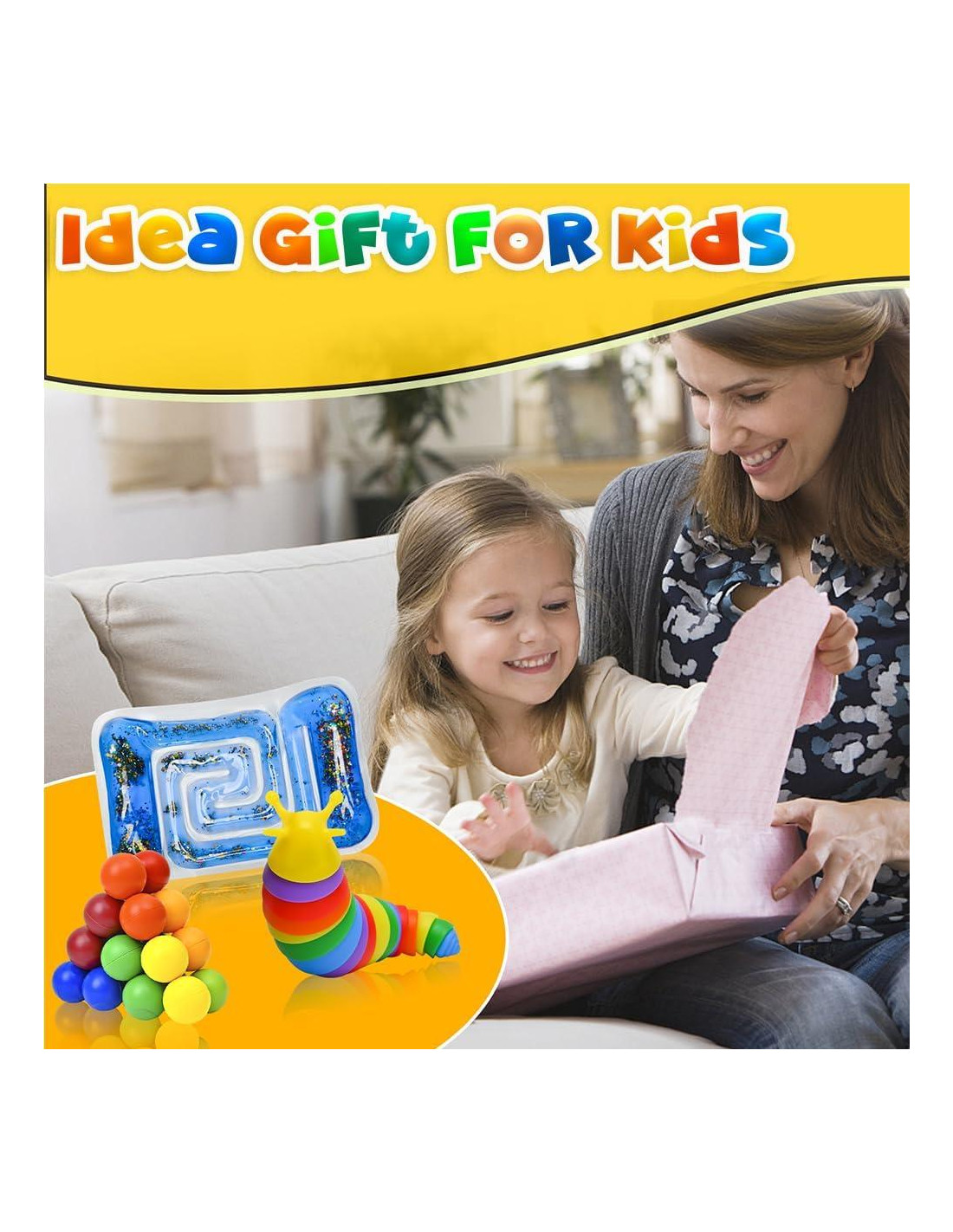 - Juego de juguetes antiestrés sensoriales - Este paquete de juguetes antiestrés incluye juguetes aplastables con agua, juguete de gusano sensorial y balón sensorial arcoíris