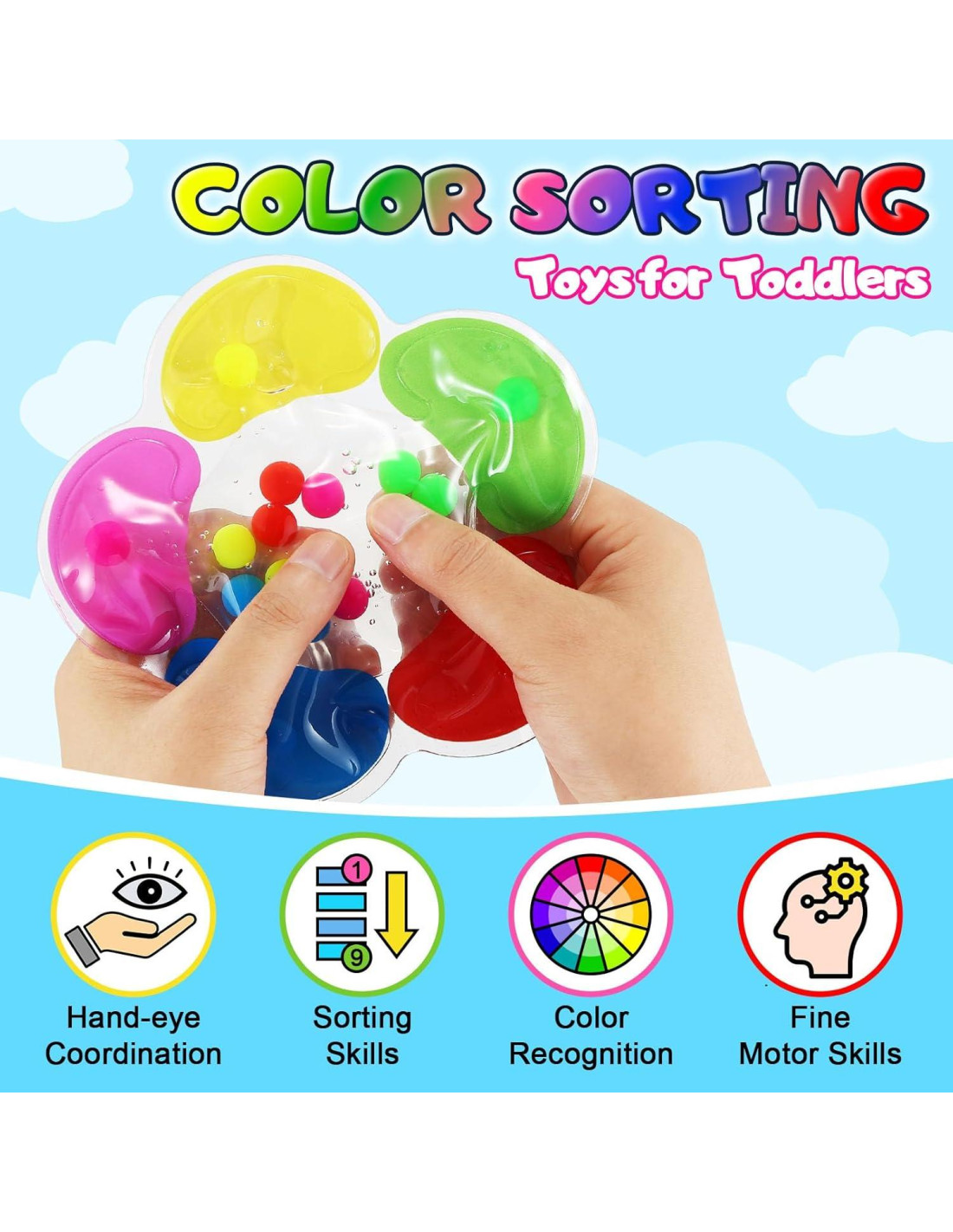 - [Juguetes Sensibles Montessori] Este juguete sensorial educativo montessori hace que sea divertido para los niños aprender a contar y los números y mejorar el reconocimiento de colores mientras juegan. Las cuentas coloridas se mueven fácilmente dentro de la bolsa de agua, lo que atrae a los niños a pasar mucho tiempo concentrándose en apretar las cuentas. A través de este juguete de clasificación de colores, los niños pequeños pueden mejorar la coordinación mano-ojo y la habilidad motora fina.