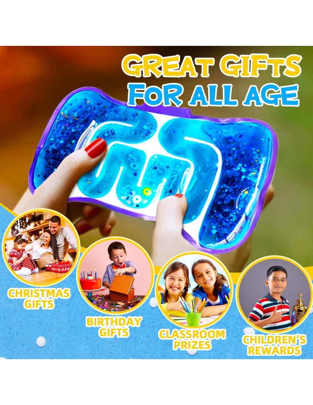 - Juguetes Antiestrés Sensoriales Mejorados: Los juguetes sensoriales están llenos de goo colorido, lentejuelas brillantes y bolas de laberinto; al apretar los tubos sensoriales, escucharás sonidos relajantes mientras el líquido fluye, verás lentejuelas de colores brillantes flotando dentro y te divertirás controlando las bolas a través del laberinto de tubos para una gran experiencia visual, auditiva, táctil y diversión de juego