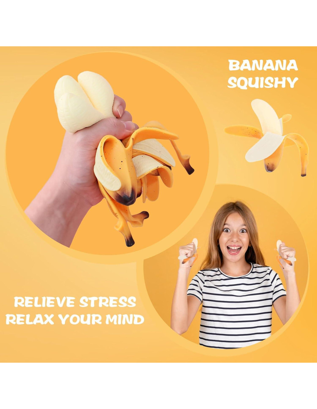 - [Un Regalo Compartible]: ¡Juguetes squishy de plátano! Perfectos como regalo de cumpleaños, recompensa en el aula o decoración única para fiestas (Navidad/Día de los Inocentes). Su diseño realista trae alegría y rompe el hielo en cualquier momento y lugar.