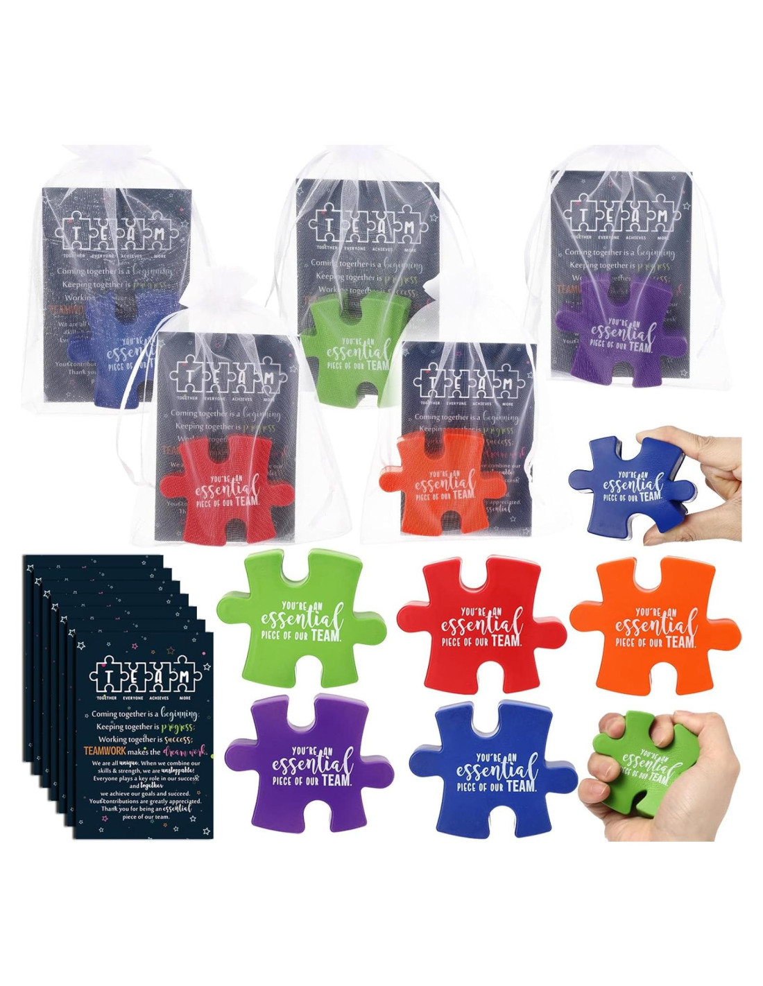 - Suficiente para Compartir: nuestros regalos de apreciación para el equipo al por mayor incluyen 25 pelotas de estrés en forma de rompecabezas con 5 colores, 25 tarjetas de agradecimiento y 25 bolsas organizadas, proporcionando una cantidad amplia para sus necesidades de regalo