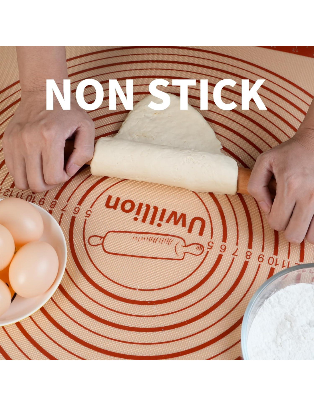 - Alfombrilla de Repostería de Doble Grosor y Duradera: Hemos añadido material de fibra de vidrio para reforzar la alfombrilla de silicona. El grosor de nuestra alfombrilla de silicona es de 0.7MM. Nuestra alfombrilla de silicona se mantendrá bien en la mesa y no se arrugará al usarla. Es ultra resistente al deslizamiento, ya sea que estés rodando, cortando o golpeando la masa.
