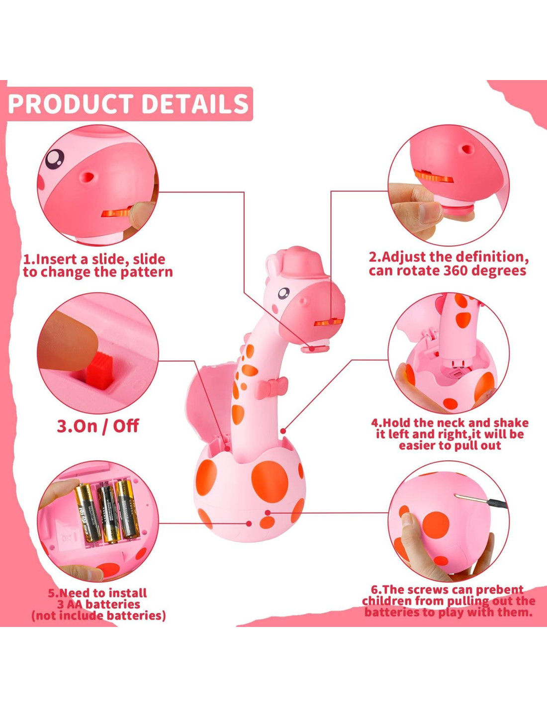 - [Fácil para Niños] Este Juguete Proyector Inteligente de Pintura tiene un proyector de alta calidad, solo necesitas apagar la luz, encender el proyector y elegir insertar una diapositiva preimpresa y el proyector puede proyectar patrones que tu hijo puede dibujar. (Rotación de 360 para ajustar fácilmente la claridad hasta que las imágenes estén claras.) ¡Es super fácil para los niños! Haz que el tiempo de juego sea divertido con este lindo proyector de arte.