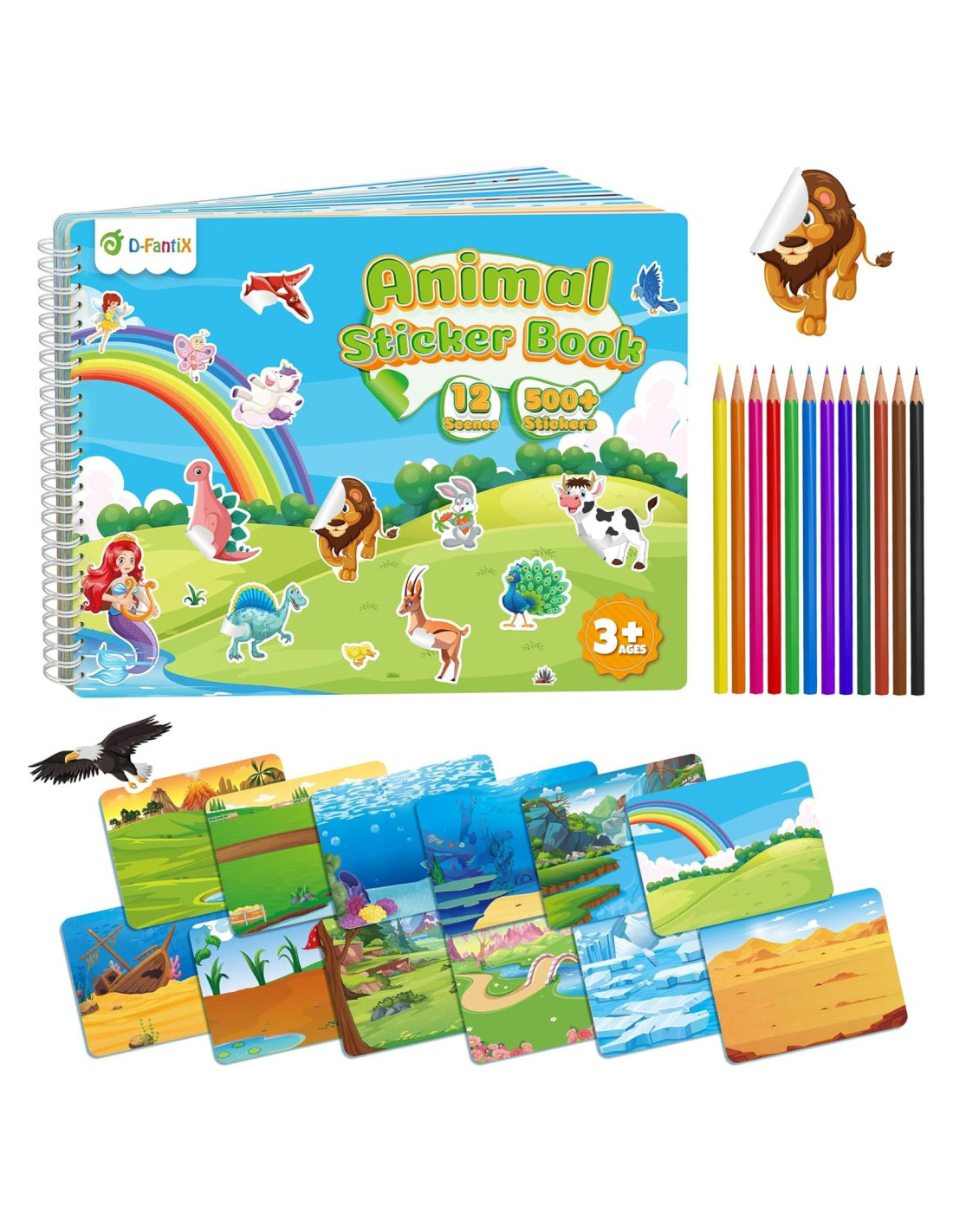 - Componentes incluidos: Caja de empaque exquisita, 12 Lápices de Colores, Libro de Stickers de Animales (500+ Stickers + 12 Escenas Originales + 12 Páginas para Colorear)
