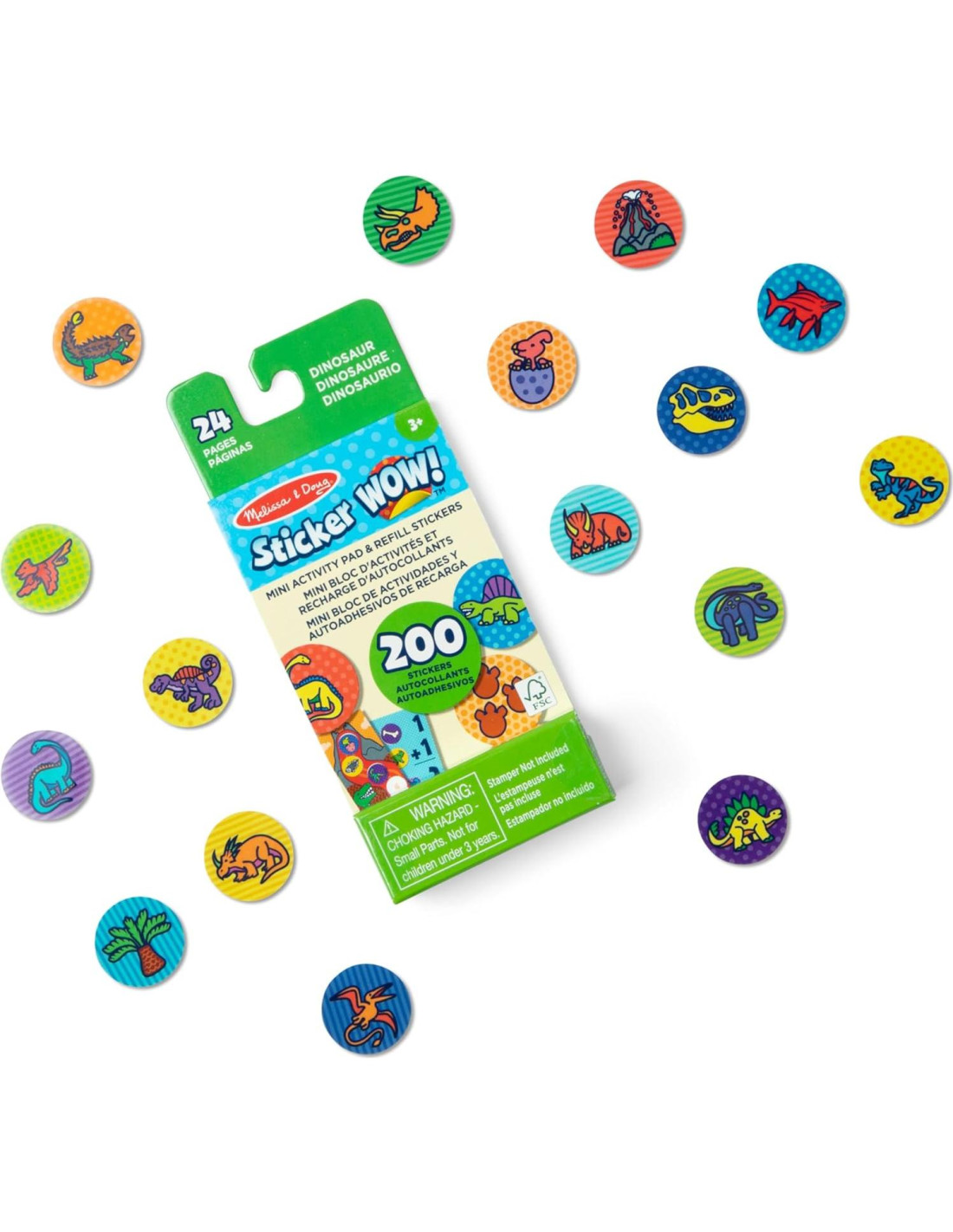 - Rellena cualquier estampador de stickers Melissa & Doug Sticker WOW! (no incluido) con 200 stickers de repuesto de diversos temas favoritos, y estampa, estampa, estampa, en cualquier lugar, en cualquier momento