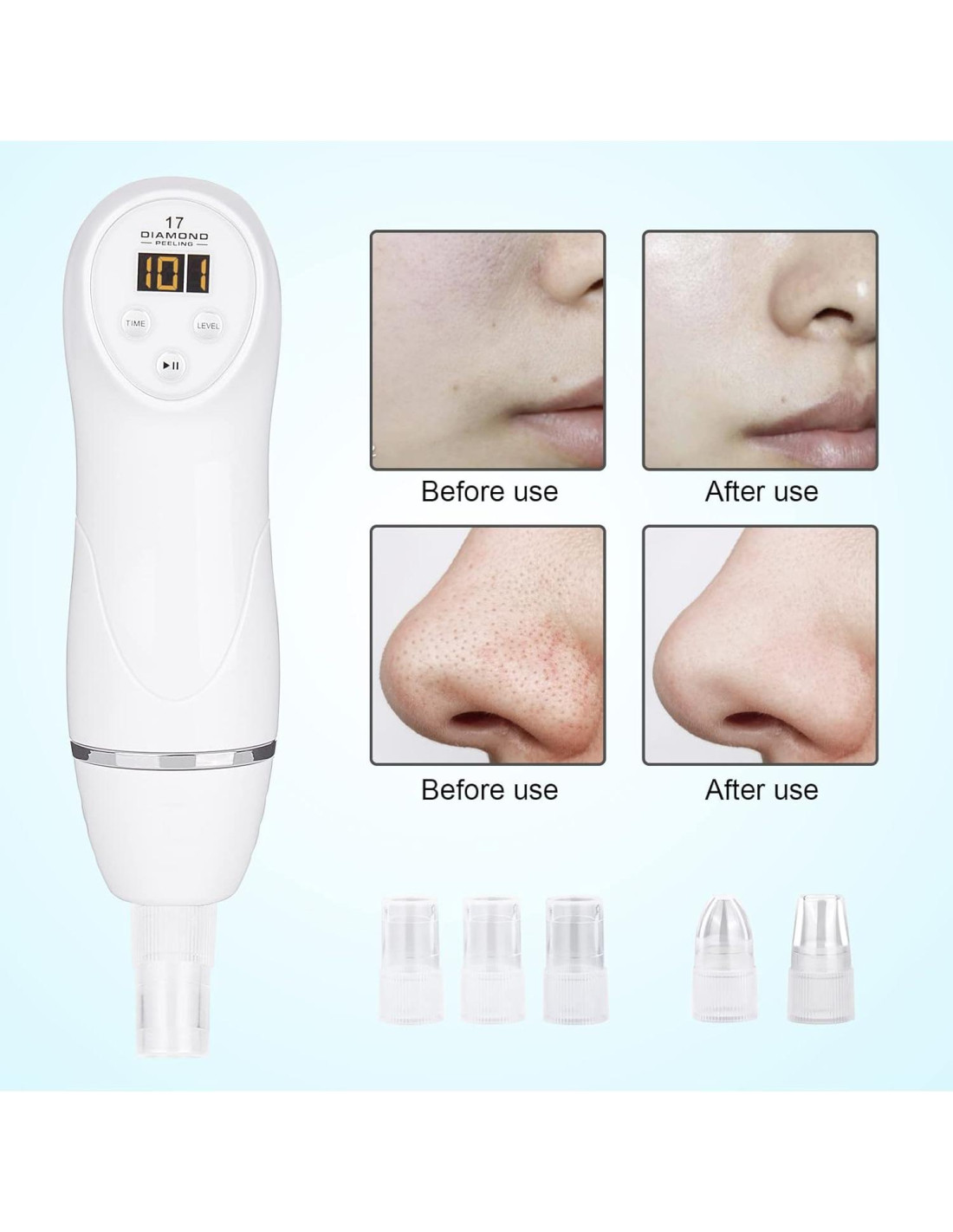 - PORTÁTIL Y FÁCIL DE USAR: Este exfoliante de piel está diseñado para tratamientos faciales diarios y es conveniente de llevar. Puedes usarlo fácilmente con tres botones. Es más seguro y efectivo que el método tradicional de limpieza facial. Ideal para vacaciones y regalos. PD. Esta máquina NO funciona con batería, por favor conecta el cargador para comenzar a usarla.