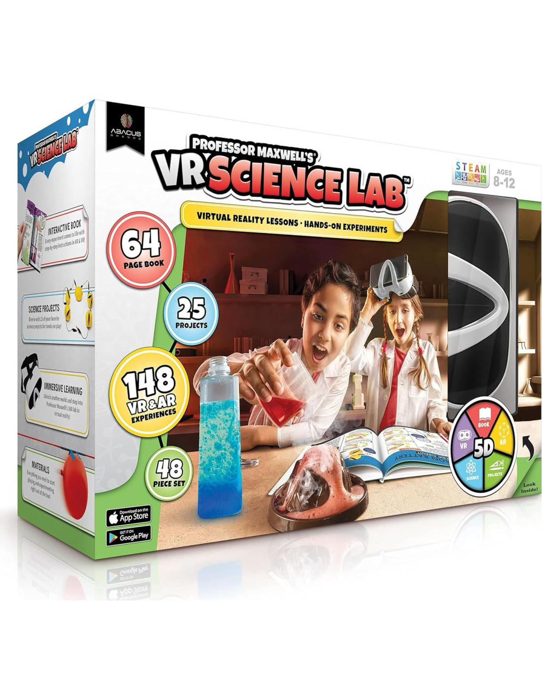 - ¿QUÉ HAY EN LA CAJA? - Este conjunto de 48 piezas incluye todo lo que necesitas, como matraces, tazas medidoras, bicarbonato de sodio, pincel y mucho más para sumergirte y experimentar los proyectos directamente desde la caja, ¡haciendo de esto un conjunto de juguetes VR para niños definitivo! (NOTA: se requieren algunos artículos adicionales del hogar)