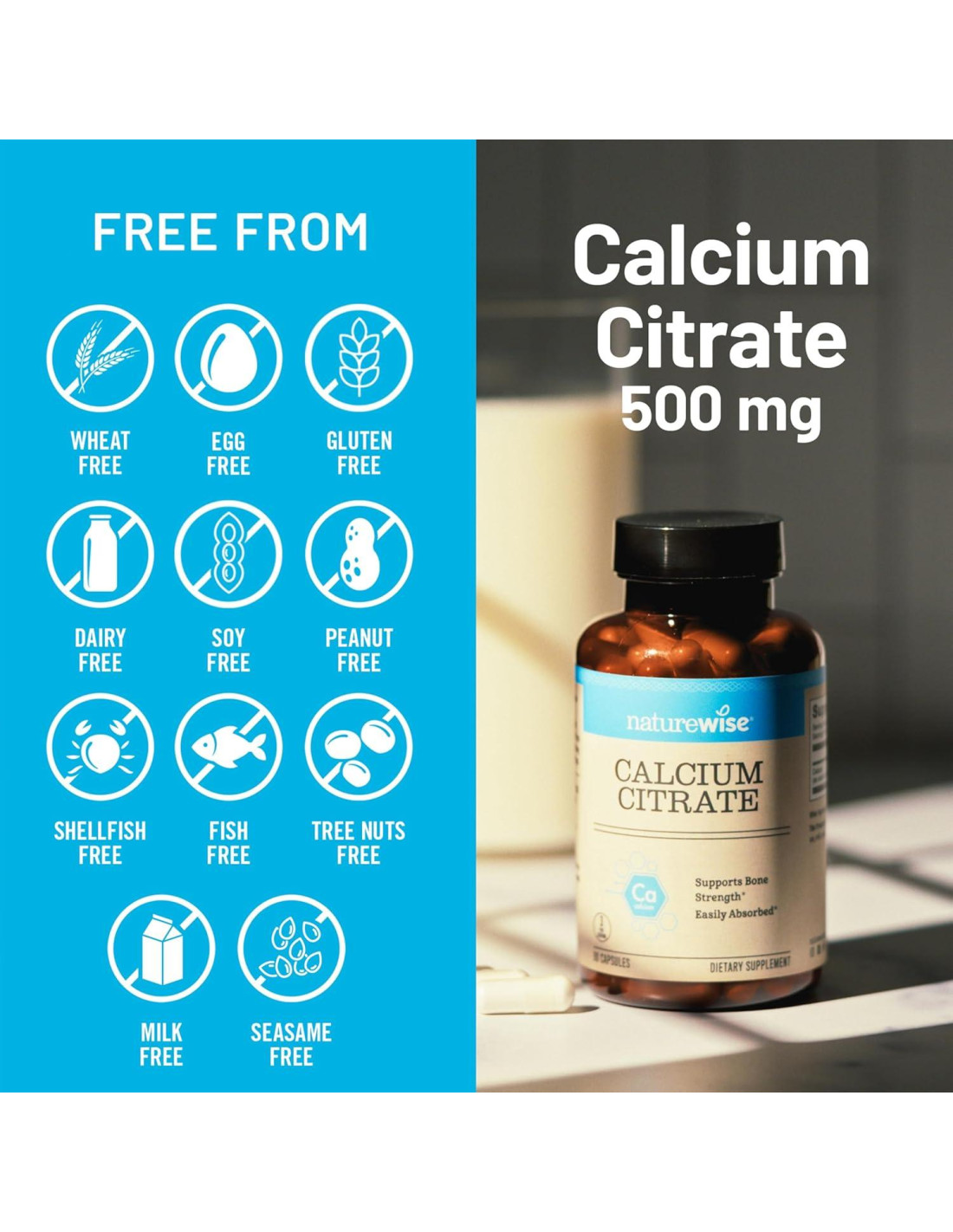 - PROBADO POR TERCEROS, FABRICADO EN EE. UU.: El Citrato de Calcio de NatureWise se fabrica en EE. UU. con ingredientes de alta calidad en una instalación certificada cGMP con auditorías de terceros.