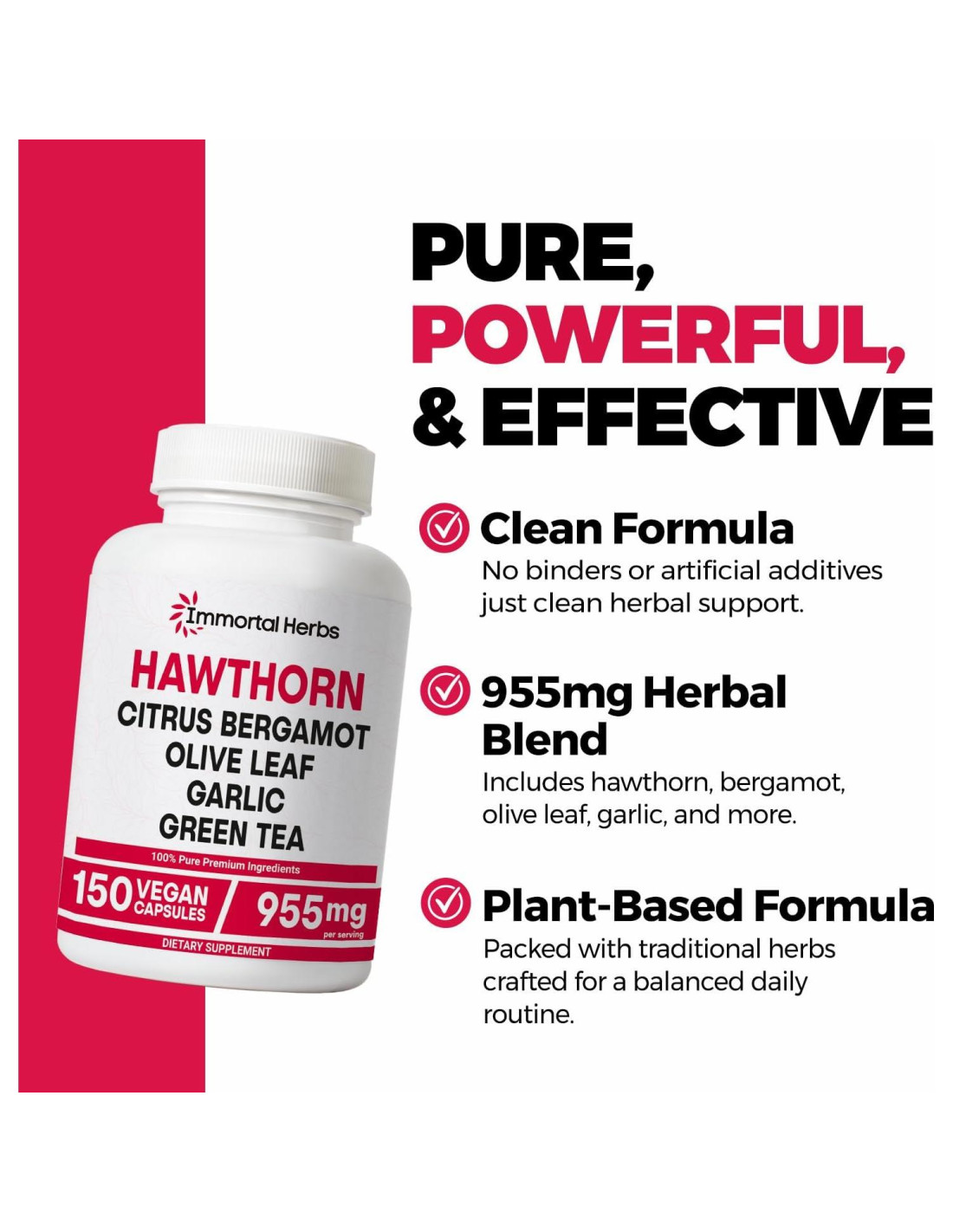 - Mezcla Potente y Purificada de Extracto de Baya de Espino: Cada porción proporciona 400mg de extracto de baya de espino, estandarizado a una concentración de 20:1, junto con cantidades clínicamente relevantes de extracto de bergamota cítrica, hoja de olivo y ajo. Ya sea que estés buscando cápsulas de baya de espino, opciones de suplemento de bergamota o cápsulas de extracto de té verde, esta mezcla multi-herbal ofrece una solución limpia y sinérgica.