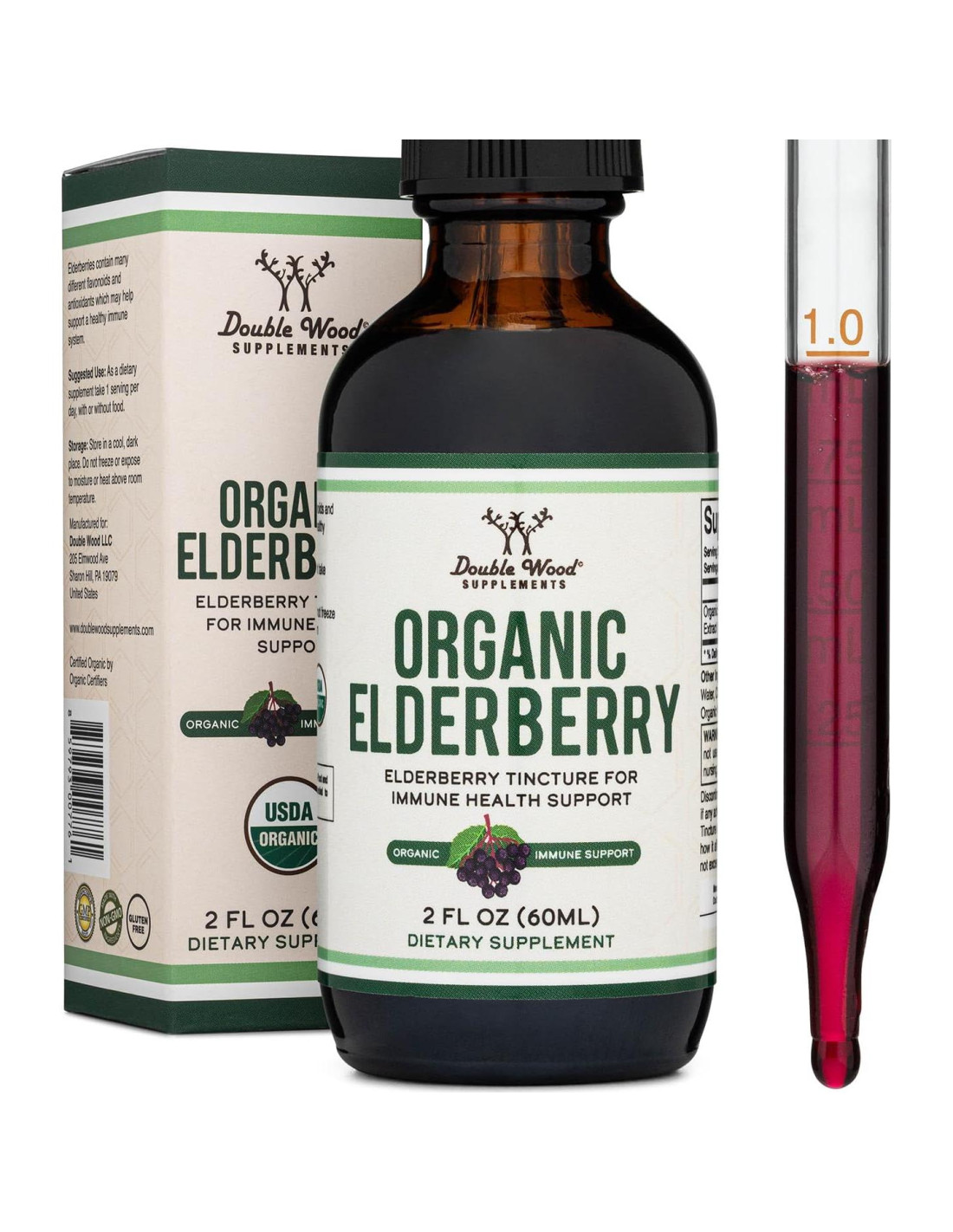 - Enraizado en Calidad - Fabricado y probado en los EE. UU. utilizando ingredientes de origen global. El Jarabe de Saúco Orgánico de Double Wood es apto para vegetarianos, No-OGM y sin gluten.