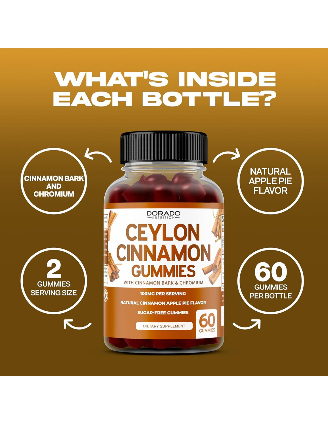 - SUPLEMENTOS DE CANELA DE CEILÁN PREMIUM - Mejora tu bienestar diario con nuestras Gomitas de Canela de Ceilán sin azúcar, que cuentan con una potente mezcla de Canela de Ceilán, Corteza y Cromo, diseñadas para apoyar un estilo de vida saludable en una forma de gomita conveniente.