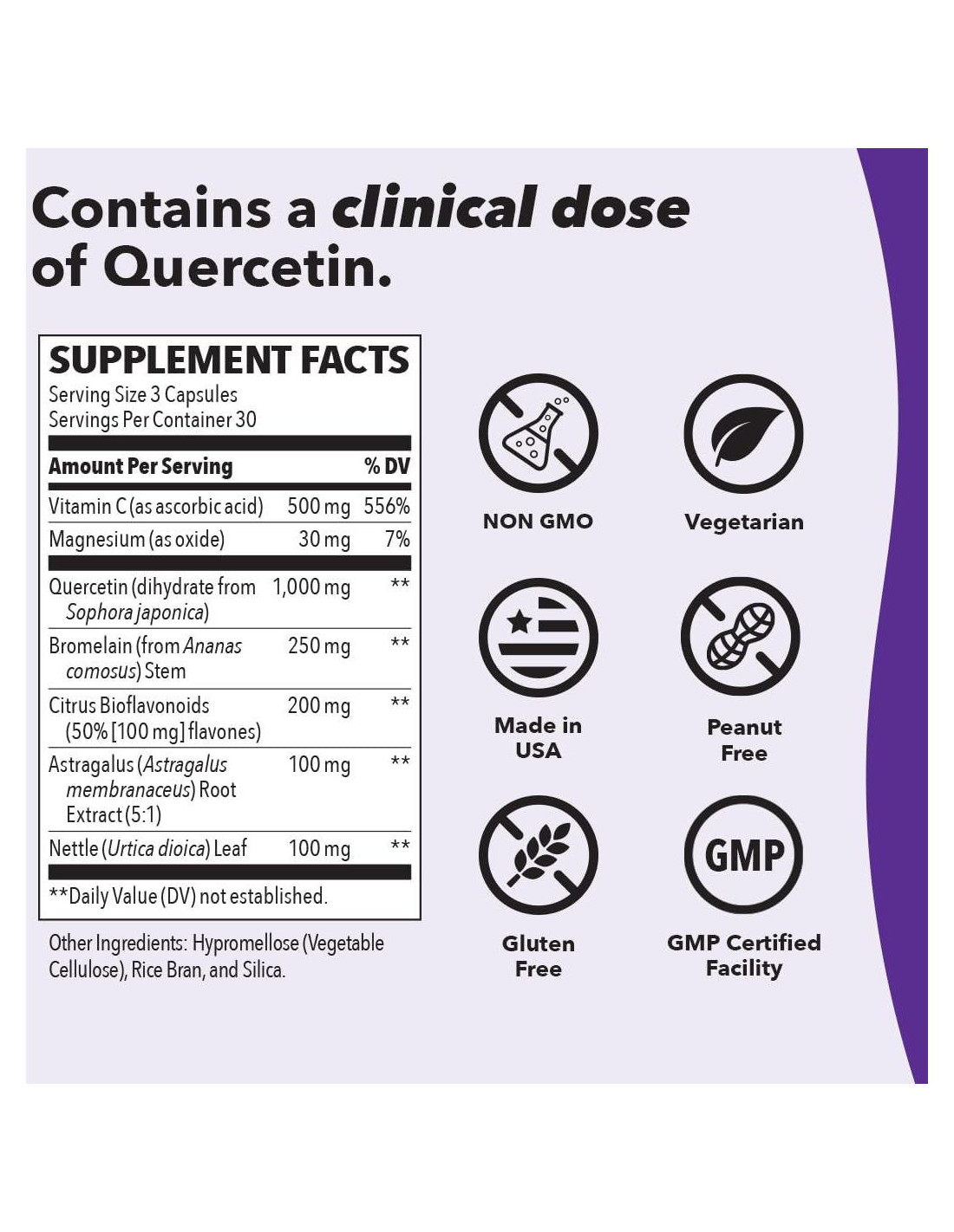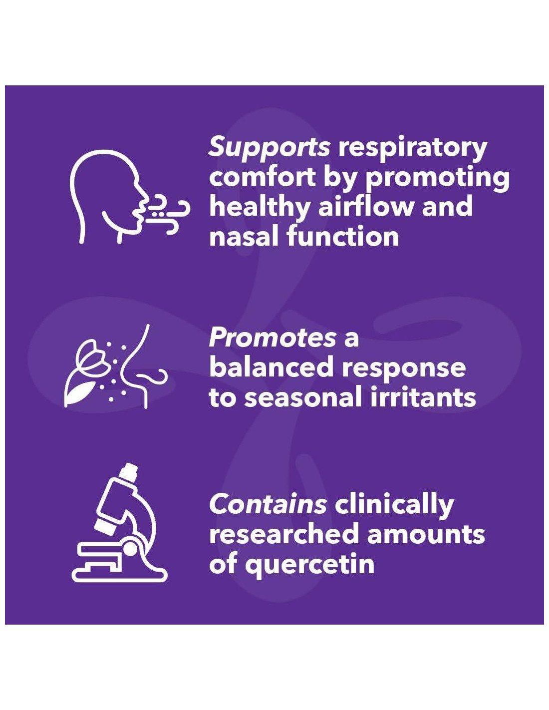 - Ingredientes Clínicamente Probados - Elaborado con ingredientes naturales como Quercetina, Bromelina, Vitamina C, Bioflavonoides Cítricos y Ortiga para apoyar el sistema respiratorio al calmar los tejidos del tracto respiratorio.