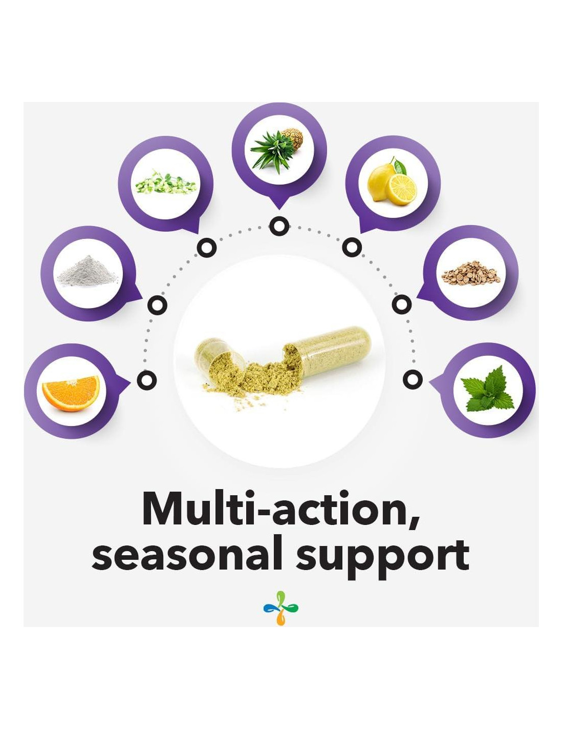 Lucha contra la temporada de alergias con LifeSeasons Breathe-X. Nuestra fórmula proporciona apoyo natural para alergias para ayudar a calmar los pasajes nasales y apoyar la función inmune. Breathe-X ayuda a apoyar las defensas naturales de tu propio cuerpo para ayudar a manejar los tejidos nasales que sufren durante los ataques de alergia. Nuestra mezcla de ingredientes naturales proporciona antioxidantes para ayudar en la desintoxicación. Confiando en ingredientes vegetales como la Bromelia y la Ortiga y flavonoides como los Bioflavonoides Cítricos y la Quercetina, nuestro suplemento natural de apoyo para senos nasales y alergias te ayuda a combatir el malestar respiratorio y de senos nasales relacionado con alergias. Durante ataques severos de alergia, toma dos cápsulas por la mañana y otras dos cápsulas por la noche. La clave es mantener un uso constante todos los días para ver los mejores resultados. En LifeSeasons, estamos dedicados a crear suplementos seguros y efectivos que apoyen tu bienestar a través del poder de las plantas. LifeSeasons Breathe-X utiliza plantas y vitaminas como la Quercetina, la Bromelina, los Bioflavonoides Cítricos y la Vitamina C que trabajan juntos para ayudar a proporcionar alivio a los pasajes nasales y también para apoyar la función inmune del cuerpo. Nos enorgullecemos y cuidamos en cómo seleccionamos, obtenemos y probamos nuestros ingredientes para cada uno de nuestros suplementos. En LifeSeasons vivimos por el dicho. Realizamos investigaciones extensas sobre ingredientes individuales y desarrollamos fórmulas que trabajan sinérgicamente para ofrecer la máxima potencia. ¿Estás cansado de tomar múltiples suplementos para obtener los beneficios únicos de salud de cada uno? Nosotros también. LifeSeasons ha investigado, probado y combinado ingredientes para crear una dosis terapéutica. Queremos que todos encuentren soluciones simplificadas a sus desafíos de salud con solo un suplemento. A través de la pureza y potencia de nuestros productos, LifeSeasons ayuda a sus clientes a encontrar el equilibrio entre valor y salud óptima. Creamos fórmulas de suplementos que equilibran la sabiduría de la naturaleza y el progreso de la ciencia, utilizando que el cuerpo puede absorber fácilmente.