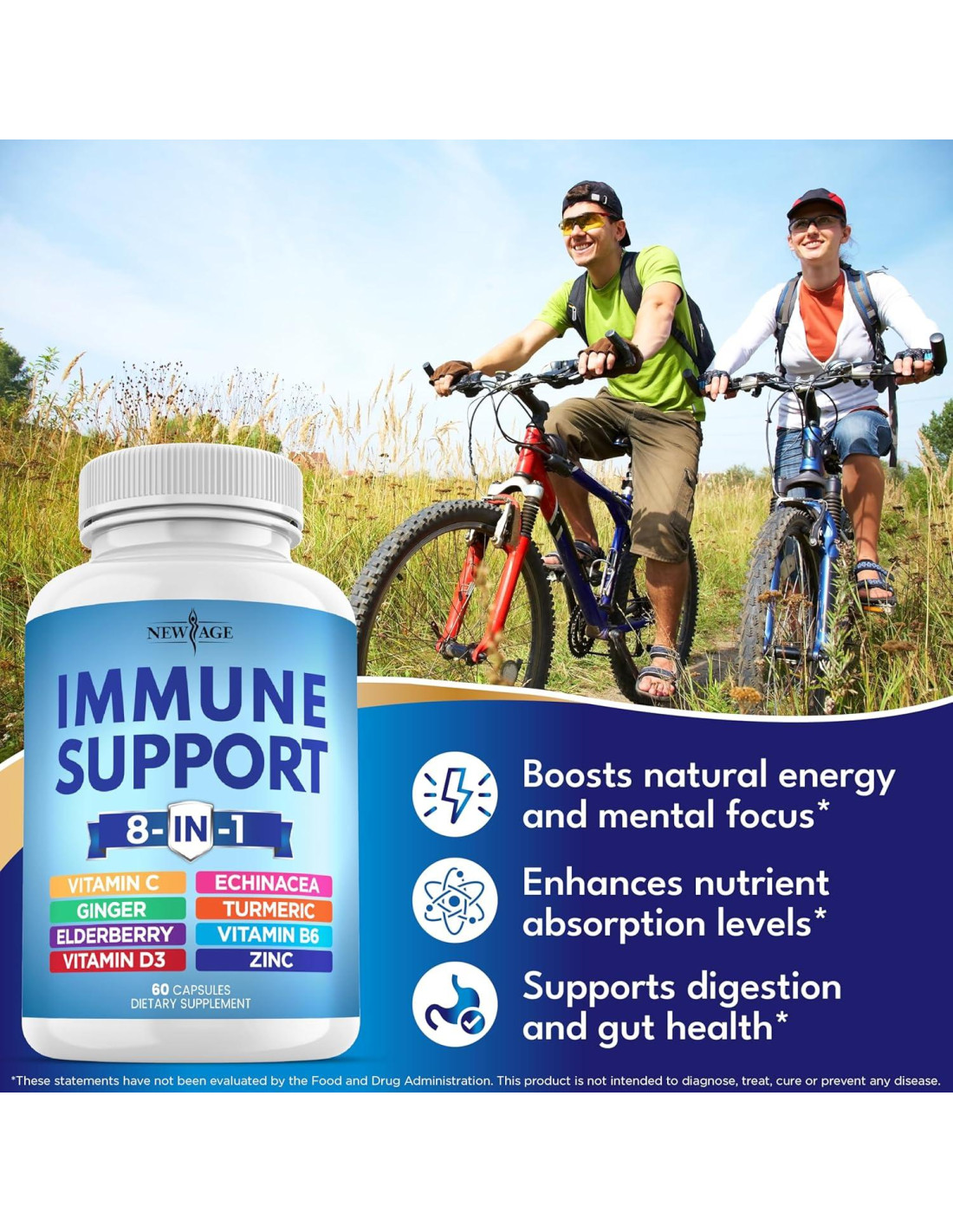 - 8 Ingredientes Poderosos para la Inmunidad - Nueva Era ha formulado la mejor cápsula de soporte inmunológico potente, cargada con más de 1550mg por porción de los 8 principales ingredientes que impulsan la inmunidad. El Saúco con Cúrcuma y Jengibre ayuda a proporcionar soporte antioxidante, el citrato de zinc (un nutriente esencial) ayuda a promover la función inmunológica, hemos añadido Vitamina D3 5000 UI, Vitamina C y Equinácea para ofrecerte un poderoso suplemento de saúco ideal para cualquier temporada y B6 para energía diaria.