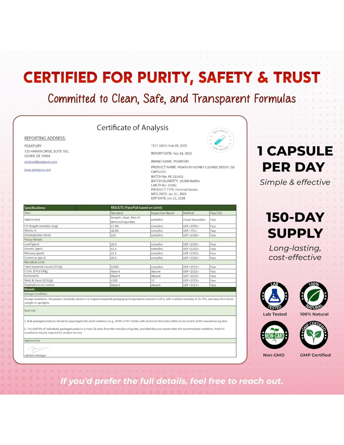 - Maximiza el Valor con Más Cápsulas: Desbloquea un valor excepcional con el premium Detox Limpieza de Riñones de PeakPury, ofreciendo 150 cápsulas por botella, proporcionando un suministro de 5 meses para apoyar tu viaje de bienestar a largo plazo