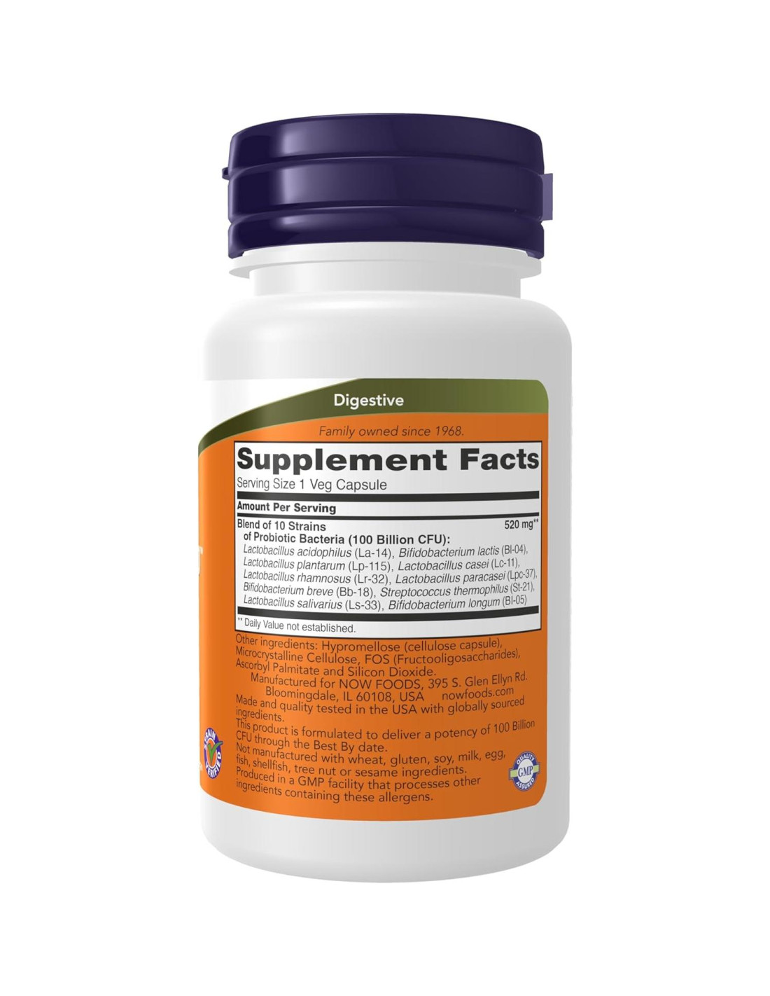 NOW Probiotic-10 ofrece un espectro equilibrado de organismos vivos que consisten en cepas bacterianas probióticas resistentes al ácido que son conocidas por colonizar naturalmente el tracto gastrointestinal humano. Las bacterias probióticas son críticas para una digestión saludable, ayudan a mantener la integridad del revestimiento intestinal, apoyan la motilidad intestinal adecuada y participan en el proceso de desintoxicación. Esta potente fórmula Probiotic-10 entrega 100 mil millones de organismos vivos para ayudar a restaurar la flora saludable tras interrupciones ocasionales pero temporales del equilibrio intestinal. Este producto está formulado para entregar una potencia de 100 Mil Millones CFU hasta la fecha de caducidad.