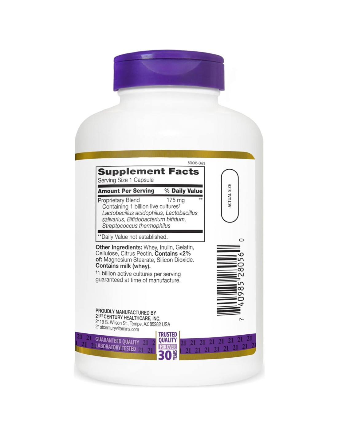 - BACTERIAS AMIGABLES PARA EL APOYO A LA SALUD DIGESTIVA*: Contiene 1 mil millones de cultivos vivos**, buenas bacterias, organismos probioticos y el prebiótico Inulina, la Mezcla de Probioticos Acidophilus del Siglo 21 ayuda a promover una actividad probiotica saludable y la salud del sistema inmunológico*