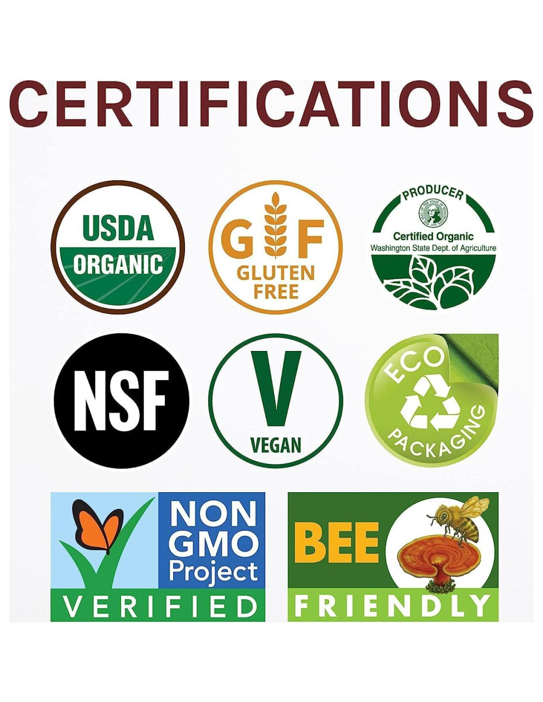 - Impulsado por Micelio de Hongo: Nuestro micelio de hongo orgánico se cultiva en sustrato de arroz integral orgánico; estudios de terceros muestran que el micelio de hongo y el sustrato de arroz fermentado apoyan su salud